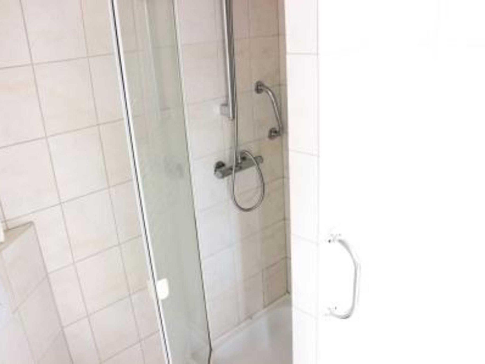 Das geräumige Badezimmer ist ausgestattet mit Dusche, WC, Waschmaschine, Haartrockner sowie einer Fußbodenheizung.