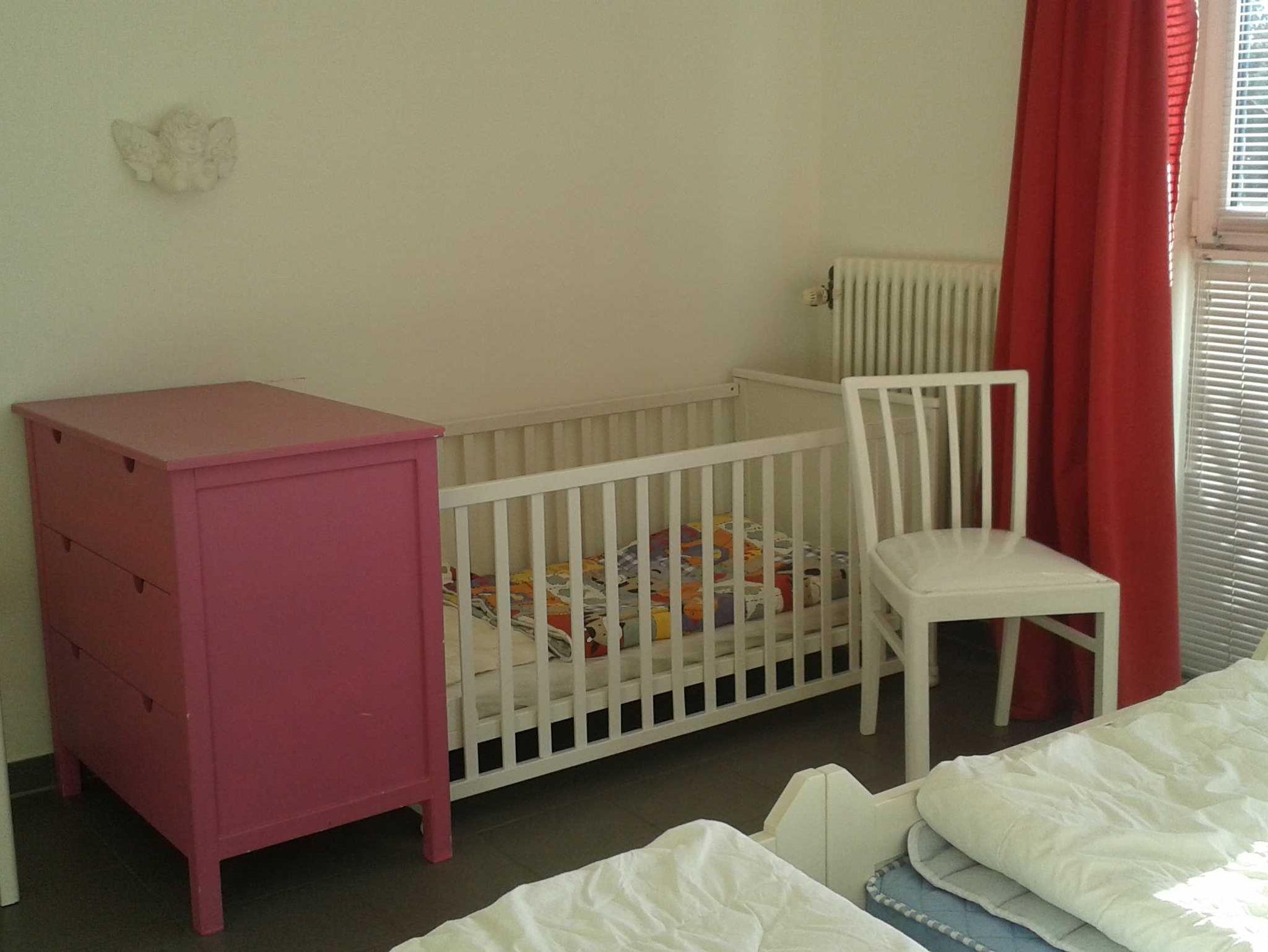 (1,70 m x 2,00 m Liegefläsche) SAT-TV, Stereo-Anlage, kleiner Glastisch, ein extra Stuhl und Hocker, Essecke mit vier Holzstühlen, Kinderhochstuhl, Buffetschrank mit Geschirr. Die separate helle Küche besteht aus einer modernen weißen Einbauküche mit Herd (Ceranfeld) und Backofen und zus. kleinen Essplatz. Bettwäsche (bitte an ein großes Spannlaken für dasSchlafsofa denken!) und Hand-/Geschirrtücher bitte mitbringen.