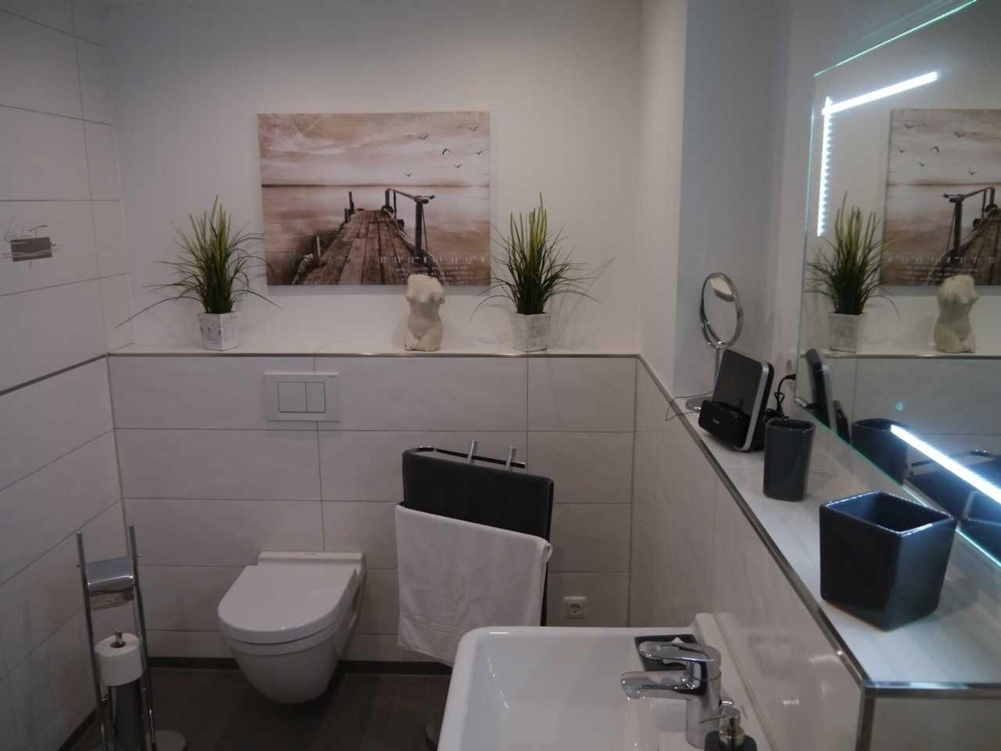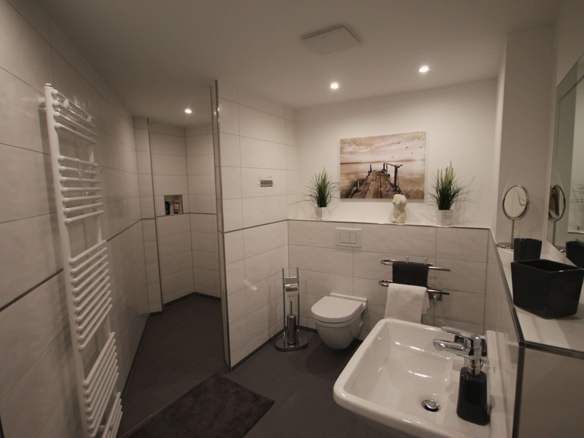 ein Traum für jeden. Das freundliche Badezimmer zaubert bereits am frühen Morgen ein Lächeln ins Gesicht. Hier empfängt den Gast eine große Duschecke mit Duschsäule / Rain und reichlich Ablagefläche für persönliche Dinge. Ein Fön ist natürlich vorhanden.