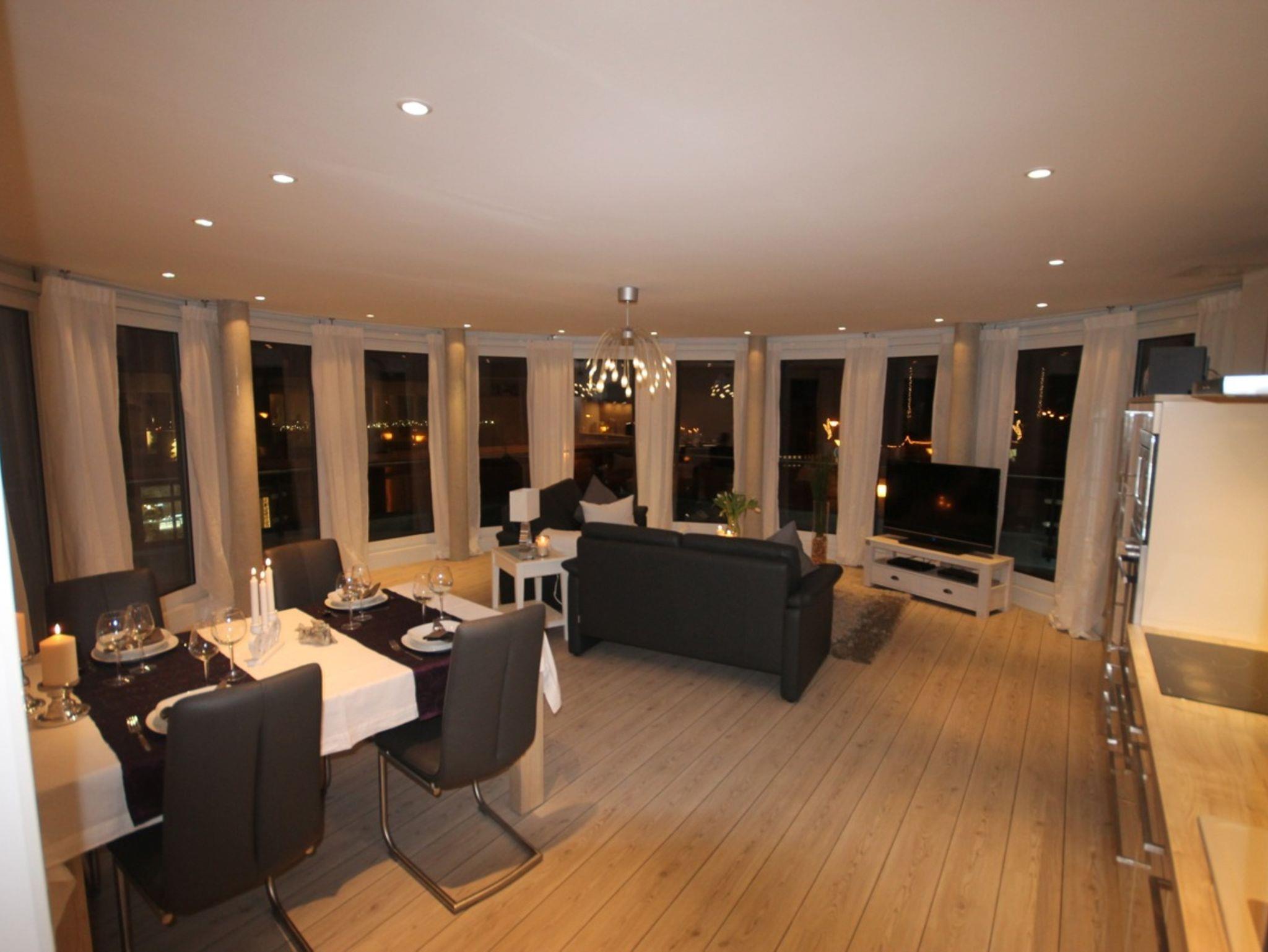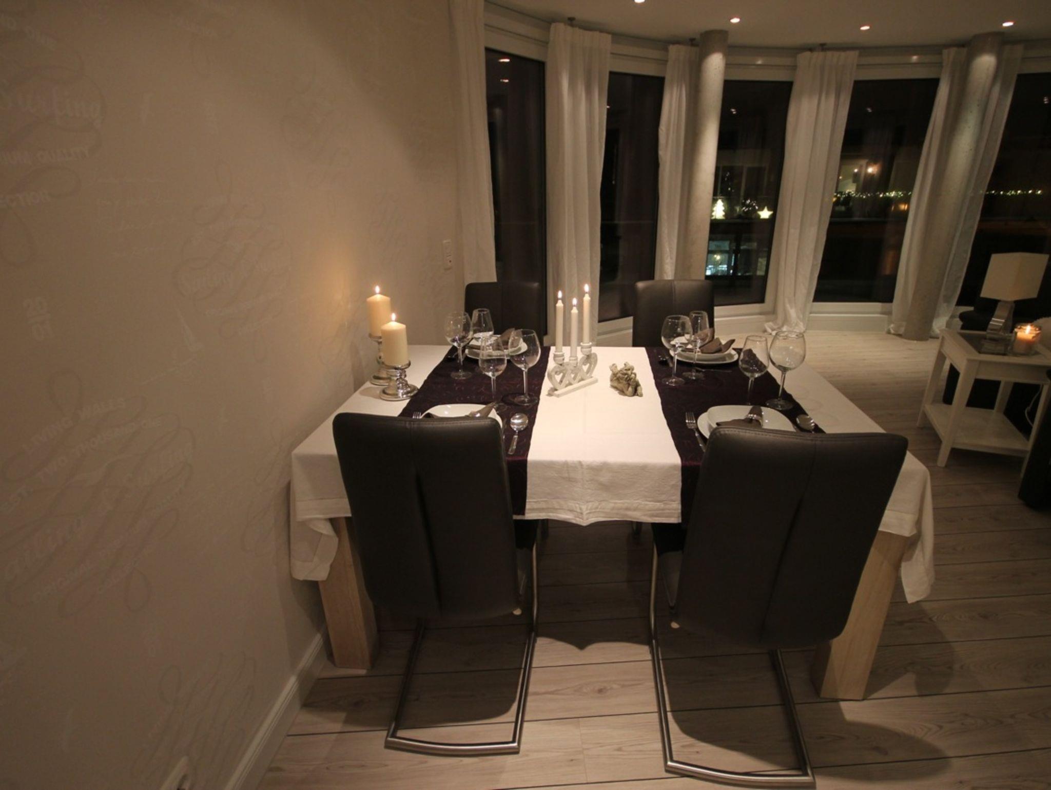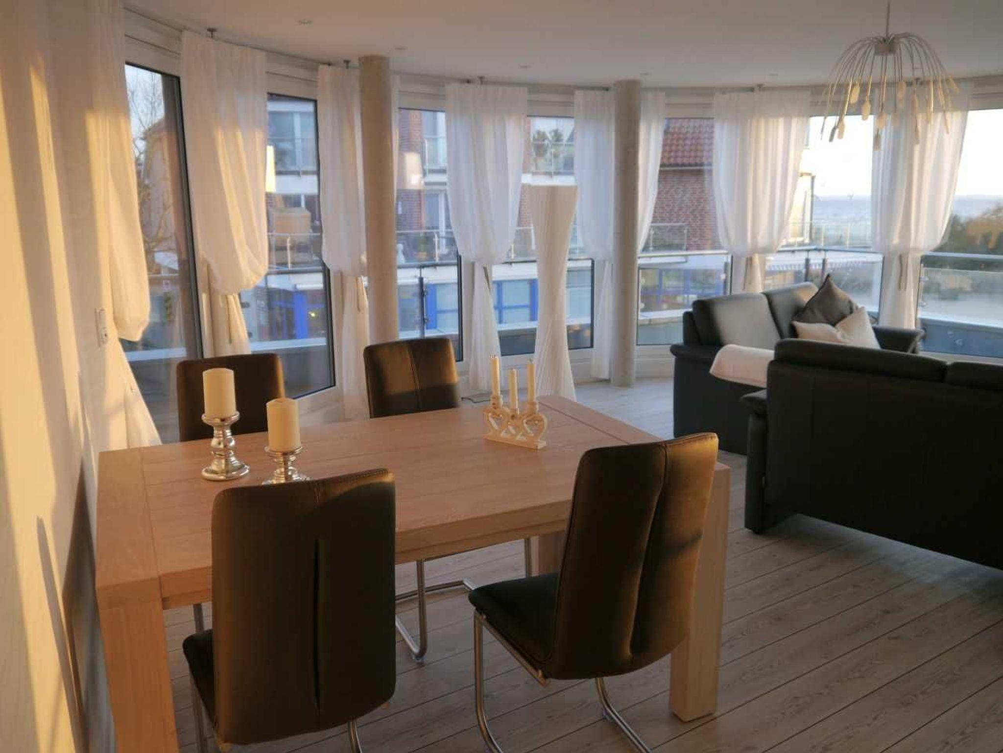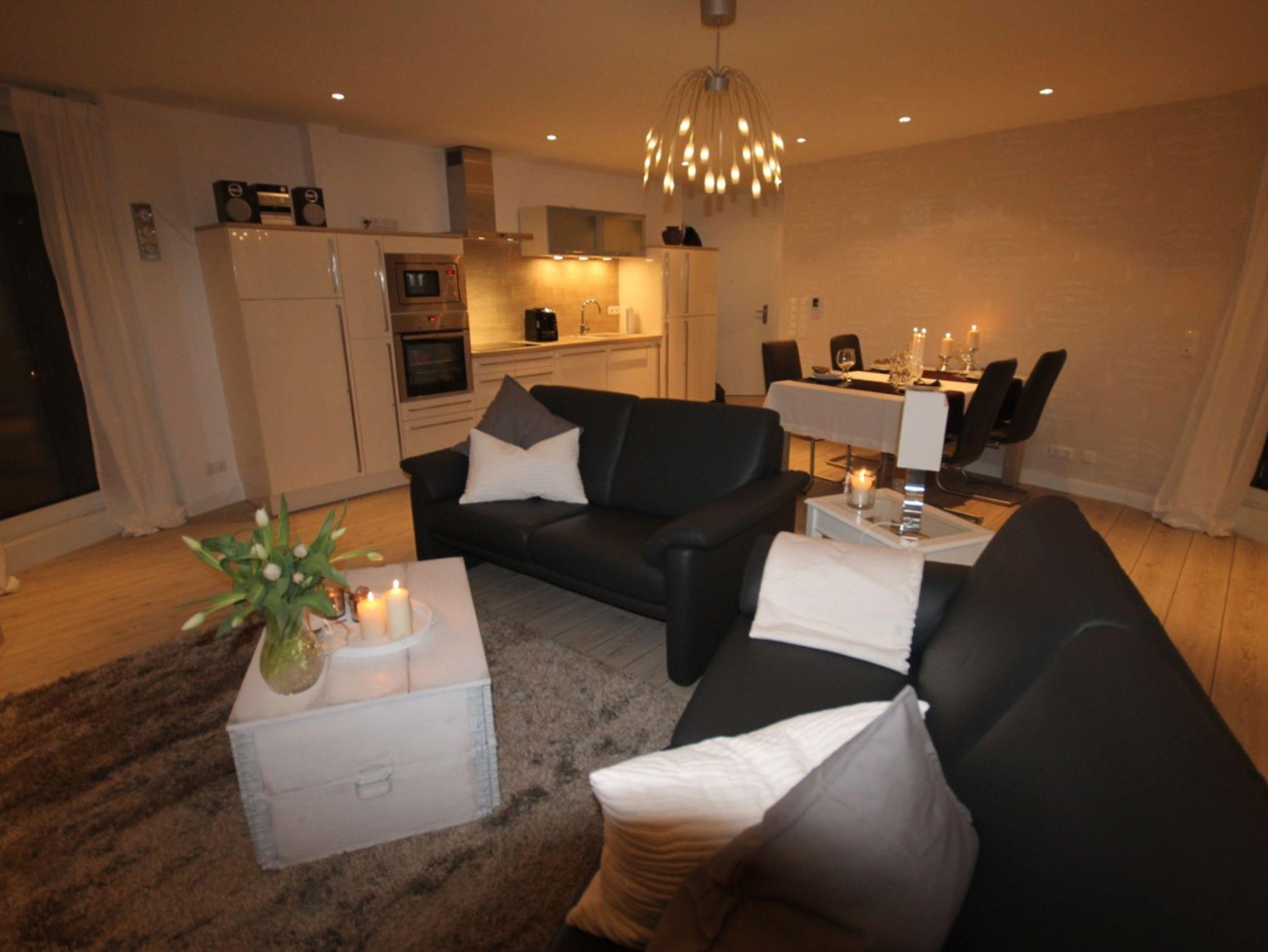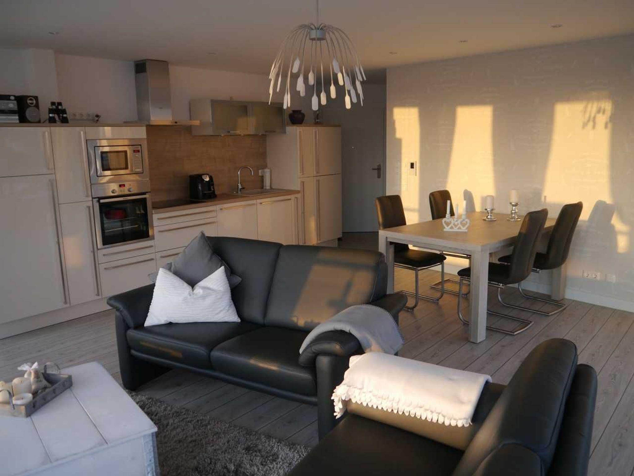 das Wohnzimmer mit seinem unvergleichbaren Blick auf die Ostsee hat eine Größe von ca. 35 m². Die bodentiefen Fenster mit einer automatischen Beschattung lassen sofort eine erholsame Stimmung aufkommen. Der Esstisch mit 4 Stühlen ist im Wohnbereich integriert. Ein Kinderhochstuhl ist bei Bedarf vorhanden. Dies bitte bei Bedarf angeben. Aktuelle Neuigkeiten gibt es über SAT-TV oder Radio. Der Fußboden ist allergiefreundlich mit Fußbodenheizung und Amtico Spacia Vinyl Designbelag erstellt