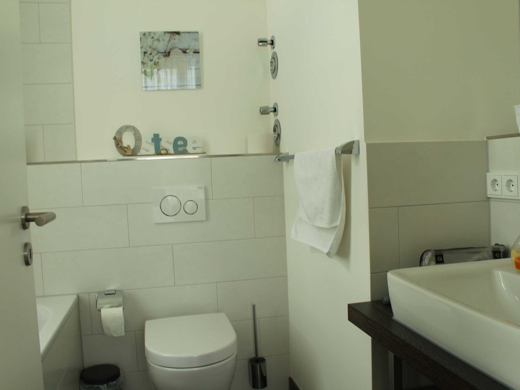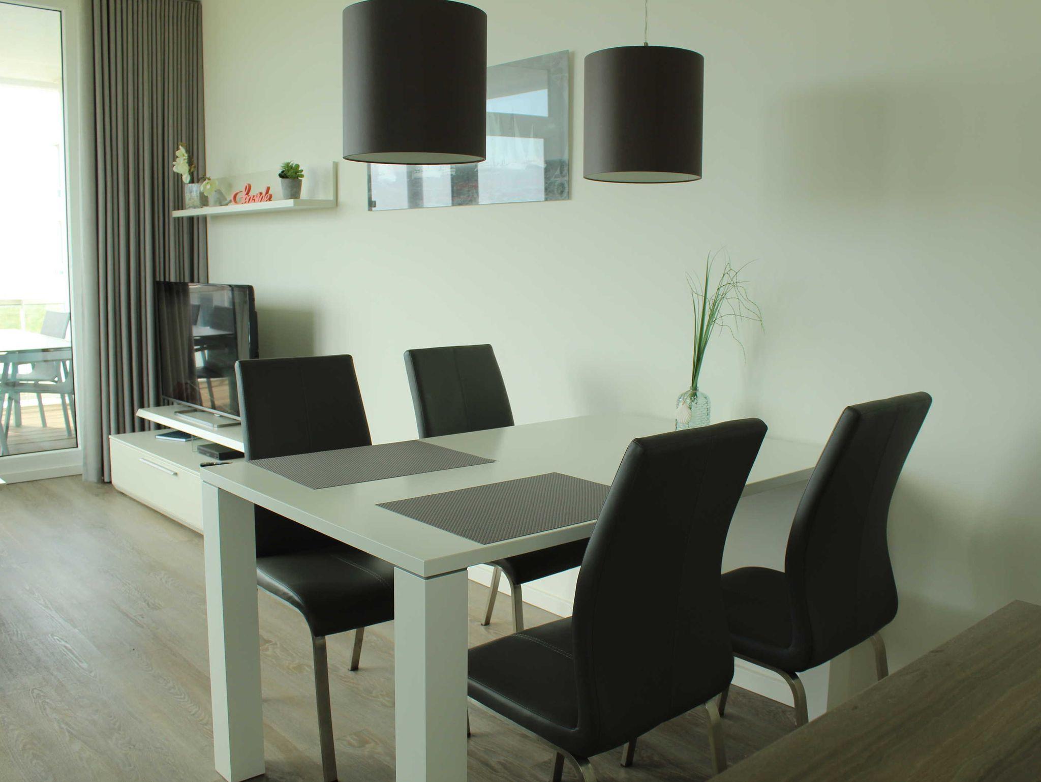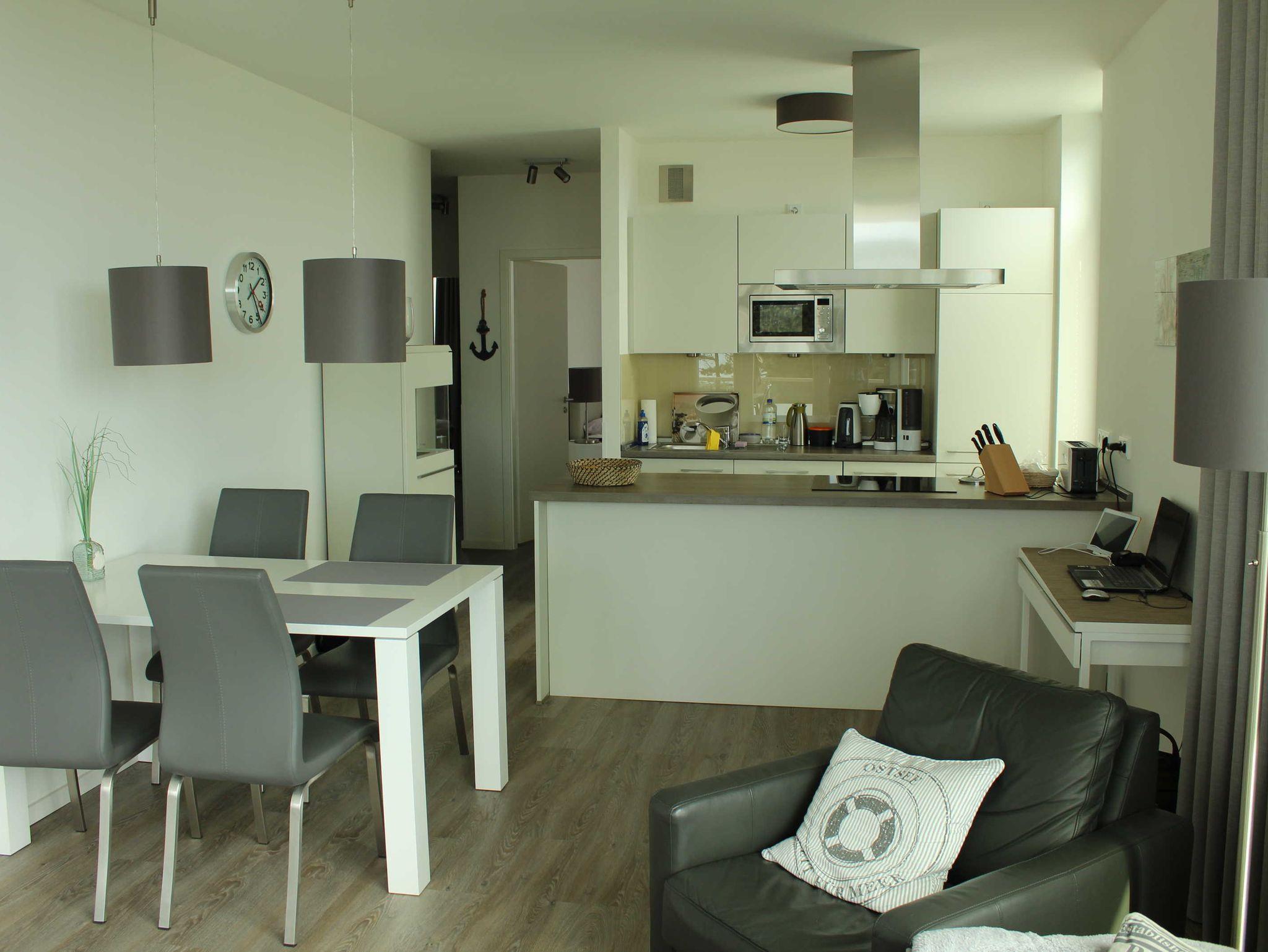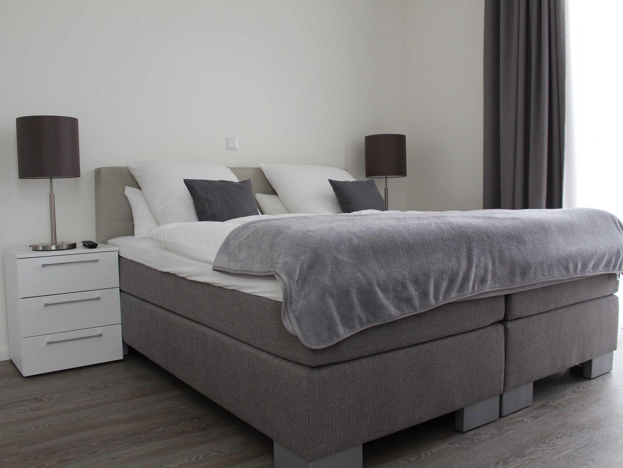 Das schicke 3-Zimmer-Appartement Seaside D-05 befindet sich im zweiten Stock und verfügt über einen Balkon mit Blick auf die Ostsee. Das Wohnzimmer ist mit einer offenen Küche (Geschirrspüler, Herd mit Backofen etc.), einem Essplatz für 4 Personen und einer gemütlichen Sitzecke eingerichtet. Auch ein kleiner Abeitsplatz für einen Laptop steht zur Verfügung. Beide Schlafzimmer sind mit Boxspringbetten (1,80 x 2 m) ausgestattet. Zwei Badezimmer - einmal mit Vollbad und einmal mit Dusche - machen die Wohnung ideal für zwei befreundete Paare. Bettwäsche und Handtücher sind natürlich inklusive.