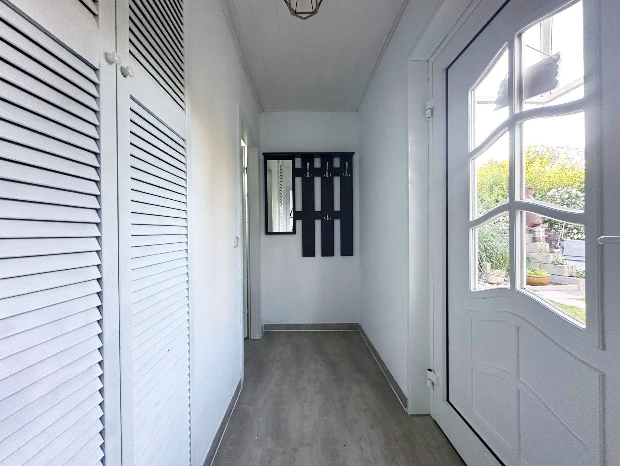 Die moderne, helle 40qm Erdgeschosswohnung hat einen eigenen Eingang. Durch den Flur betritt man die barrierearmen Räume. Linker Hand gelangt man in das kleine Wohn-/Esszimmer mit offener Pantry-Küche. Die Küche ist mit allem ausgestattet, was man für ein paar Tage an der Ostsee benötigt. Auch Geschirrtücher und Reinigungsmittel sind vorhanden.