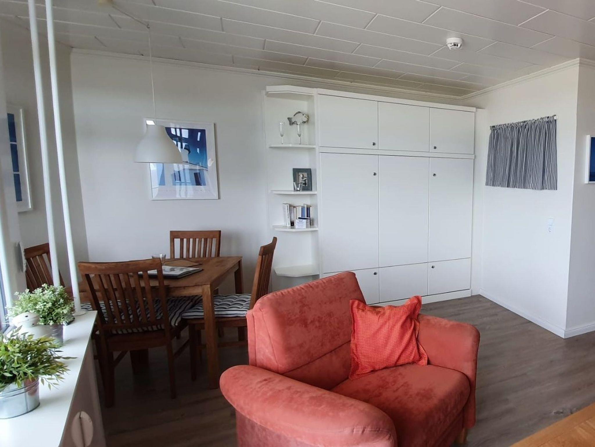 Der Wohnzimmerschrank lässt sich mit schnellem Handgriff in ein komfortables Doppelbett verwandeln, so dass man auch morgens direkt nach dem Aufstehen den Meerblick genießen kann.