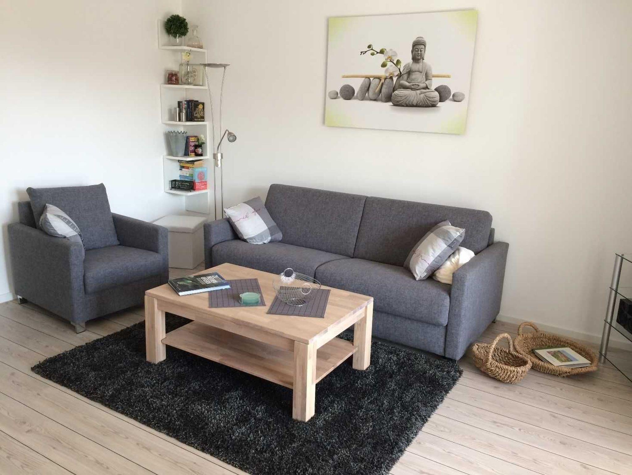 Küche : Die offene Wohnküche integriert sich nahtlos in die Wohnbereich. Hier findet der Gast alles was er braucht. Geschirrspüler, Induktionskochfeld, Herd, Mikrowelle, Kaffeemaschine, Wasserkocher sowie ausreichend Geschirr, Töpfe, Gläser und Besteck sind vorhanden. Badezimmer : Das freundliche Badezimmer ist funktional eingerichtet. Eine große Duschecke und reichlich Ablagefläche für persönliche Dinge sind vorhanden. Ein Fön ist natürlich auch vorhanden. Schlafzimmer: Ein Doppelbett mit zwei Kaltschaum-Matratzen (80 x 200 cm) lassen unsere Gäste gut zur Ruhe kommen. Ein großer Kleiderschrank bietet Platz für mitgebrachte Sachen. Ein kleines Reinigungsset (Staubsauger und Wischer) für das Wohlbefinden zwischendurch hat hier auch seinen Platz gefunden. Zwei Nachttischlampen direkt am Bett ermöglichen auch einen kuschligen Abend mit einem netten Buch.