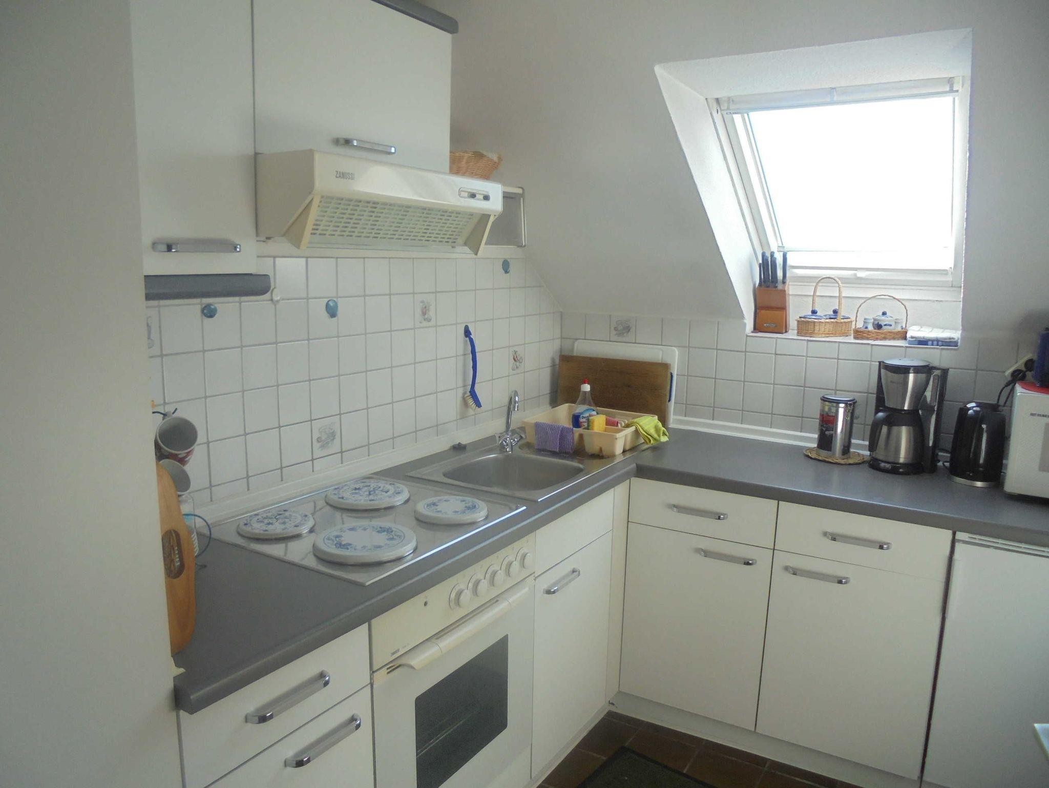 Geräumige 3-Zimmer-Wohnung (72 m²) im Obergeschoss eines Einfamilienhauses, großes Wohnzimmer mit gemütlicher Sitzecke, SAT-TV, Essecke, Balkon, ein Schlafzimmer mit Ehebetten, ein Schlafzimmer mit zwei über Eck stehenden Einzelbetten, separate komplett eingerichtete Küche, Dusche/WC. Die Betten sind bei Anreise bezogen und Handtücher liegen bereit.