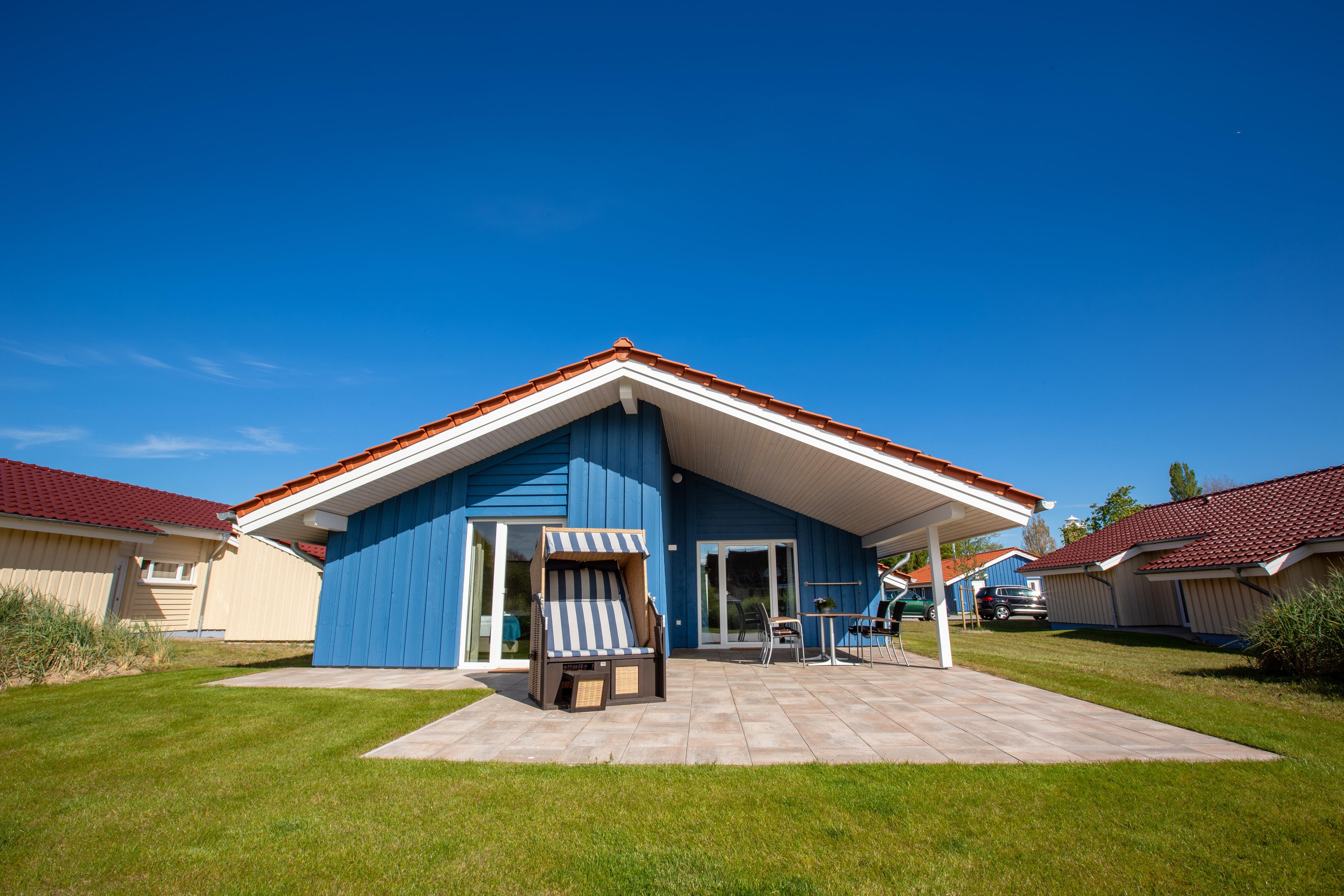 Die Skipperhäuser (Typ A plus) verfügen über zwei separate Schlafzimmer mit Boxspring-Doppelbetten. Der großzügige Wohnraum geht in den offenen Küchen- und Essbereich über. Der Kaminofen bildet das Zentrum des Wohnraumes und lädt zu gemütlichen Abenden ein. Vom Badezimmer mit ebenerdiger Dusche gibt es einen direkten Zugang zur Sauna. Die Terrasse mit Zugängen vom Wohn- und einem der Schlafzimmer rundet den Aufenthalt ab.