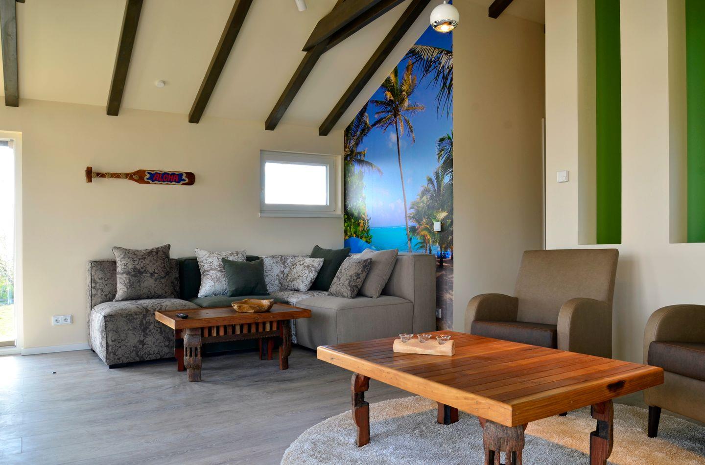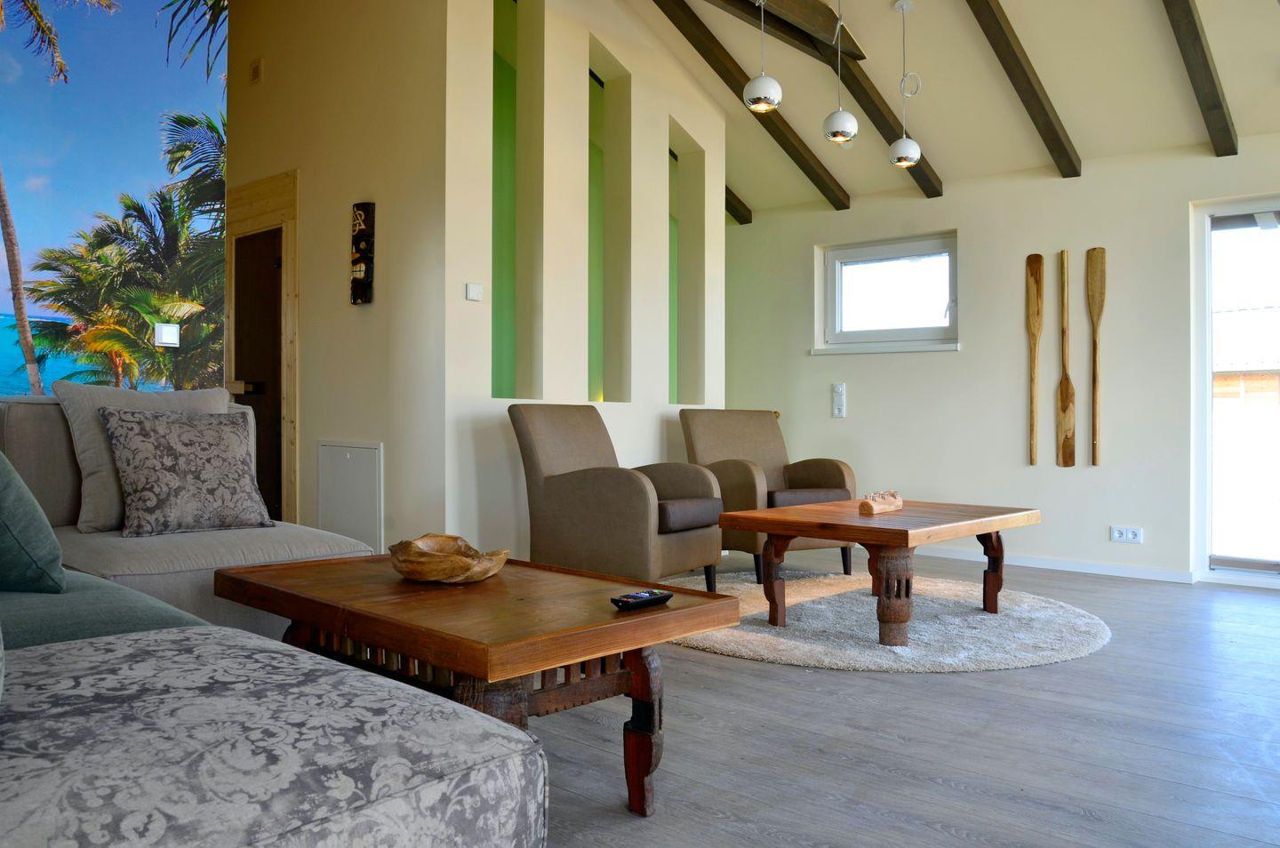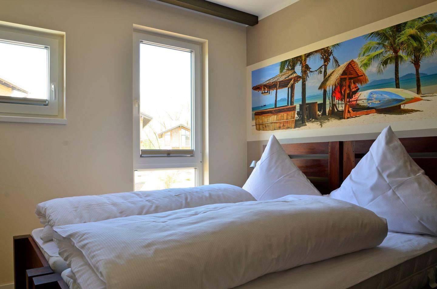In erster Reihe gelegen und mit direktem Zugang zum Strand, genießen Sie in den Ferienhäusern des Typs A von Terrasse und Balkon eine freie Aussicht auf die Ostsee. Mit einer Wohnfläche von 100 m2 auf zwei Ebenen erwartet Sie Ihre helle und großzügige Unterkunft mit erlesenem Mobiliar und hawaiianischem Flair. Mit drei Schlafzimmern und zwei Badezimmern sind die A-Ferienhäuser ideal für größere Familien und Urlaub mit Freunden geeignet. Zwei Schlafzimmer und ein Duschbad befinden sich im Erdgeschoss, ein weiteres Schlafzimmer sowie ein Vollbad mit Badewanne und Dusche im Obergeschoss. Dazu lädt eine offene, hochwertig ausgestattete Küche zum geselligen Beisammensein ein. Das geräumige Wohnzimmer im 1. Stock mit Kamin und Balkon bietet zusätzlichen Aufenthaltsraum und verwöhnt Sie mit einem traumhaften Ostseeblick.