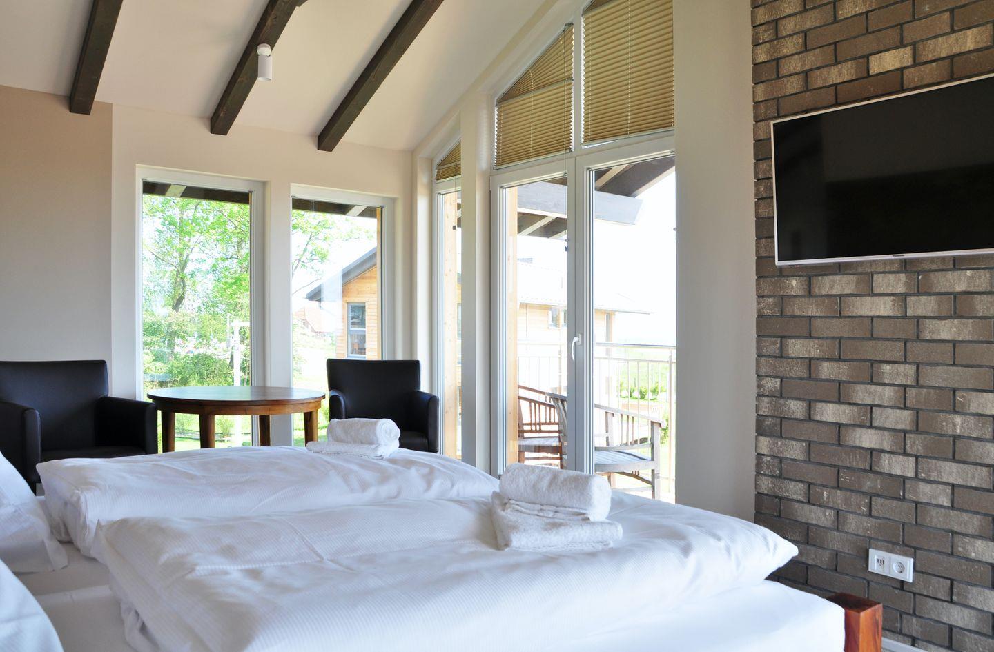 Durch die großzügige Wohnfläche mit Sauna und der Terrasse sowie Balkon, garantieren die Typ B2 Ferienhäuser einen erholsamen Urlaub bei jedem Wetter. Somit sind sie ideal für größere Familien, genau wie für gemeinsam reisende Freunde.