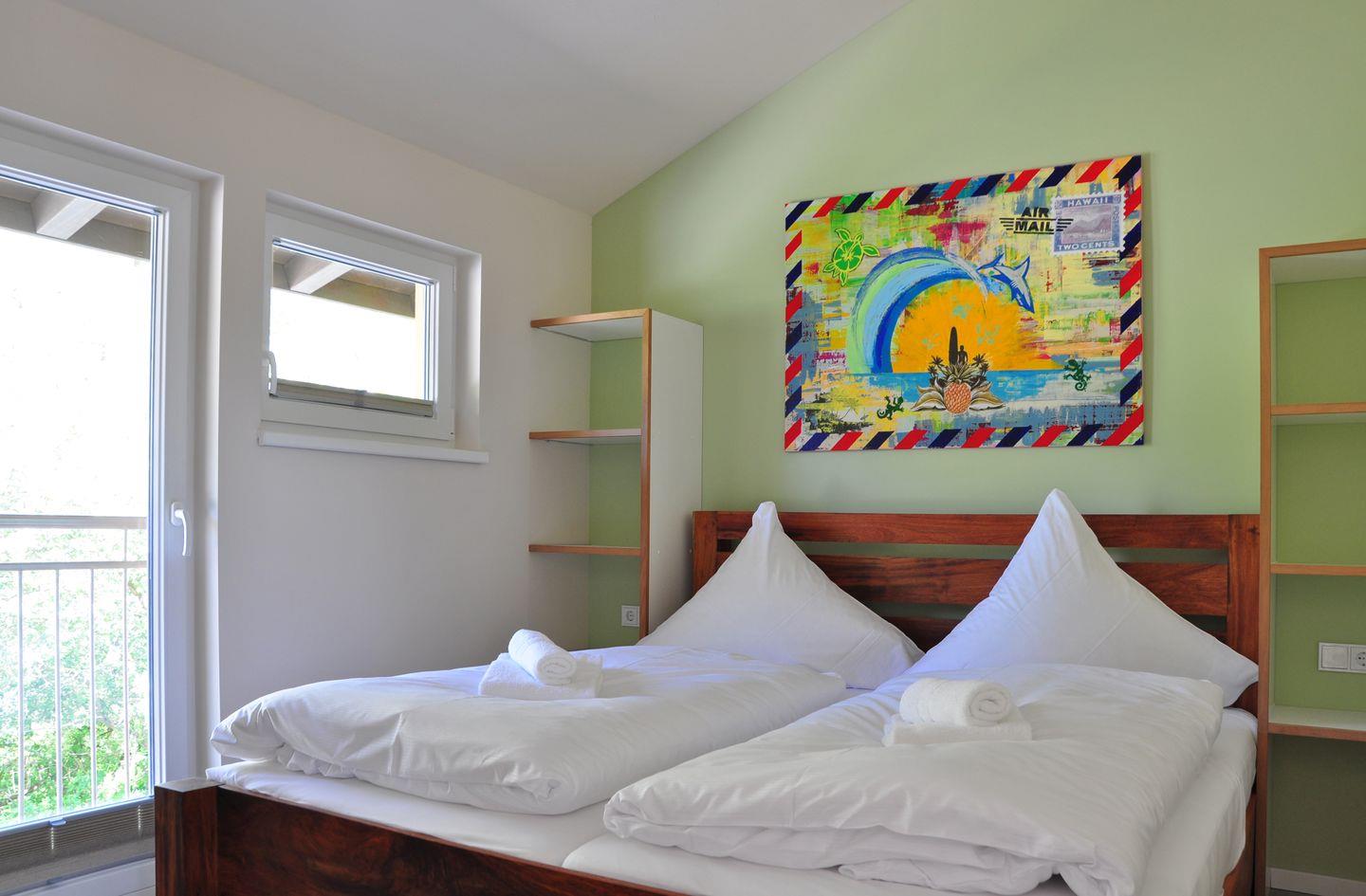 Die D1-Ferienwohnung befindet sich im ersten Stock unseres Haupthauses "Hawaii" und überzeugt mit ihrem offenen Wohn-Essbereich sowie mit einem schönen Balkon mit Blick über das Gelände in Richtung Strand.