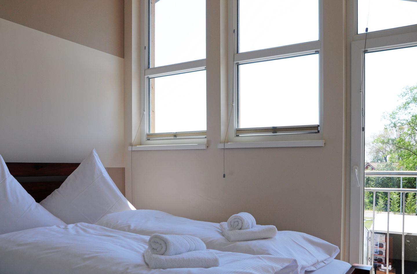 Ideal für Paare und kleine Familien, laden unsere Ferienwohnungen des Typs D1 zum Ostseeerlebnis ein. Die Ferienwohnung bietet mit einer Wohnfläche von 55 m2, zwei Schlafzimmern und einem großen Balkon ausreichend Platz für drei bis vier Personen. Hell und freundlich, mit modern eingerichteter Wohnküche, offenem Essbereich und gemütlicher Sitzecke sowie kostenlosem WLAN, Flat-TV, DVD-Player und Stereoanlage genießen Sie hier unbeschwerte Stunden.