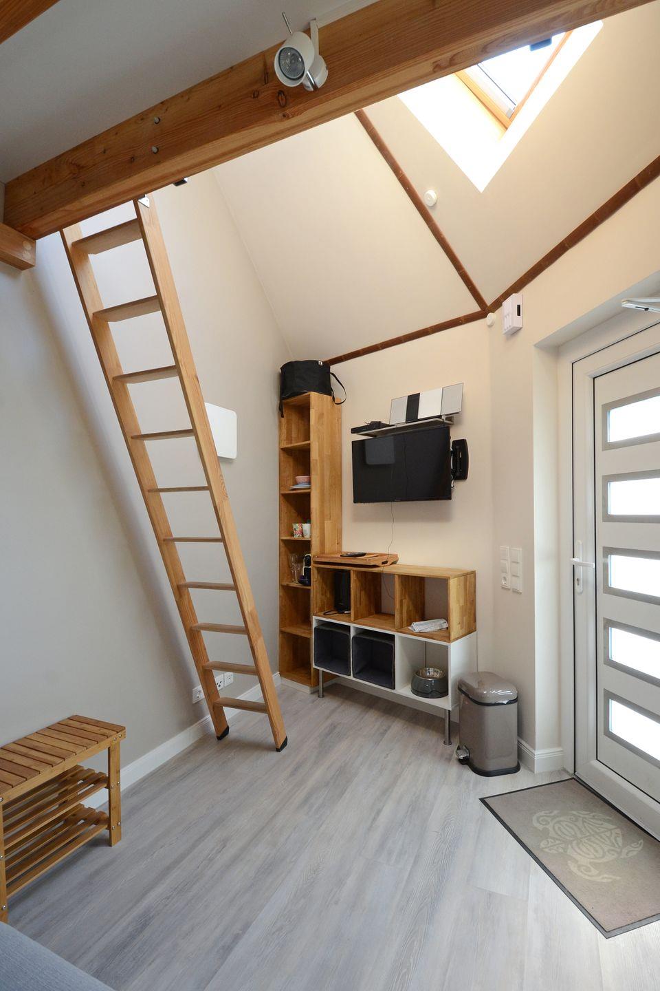 Das Doppelzimmer im Hostel-Stil verfügt über 12,5 m2, ist über zwei Ebenen konzipiert und besitzt einen separaten Eingang. Im unteren Bereich befindet sich ein modernes Duschbad, ein gemütliches Sofa sowie eine Kühlbox. Über eine kleine Treppe erreichen Sie die Schlafempore mit einem Doppelbett.