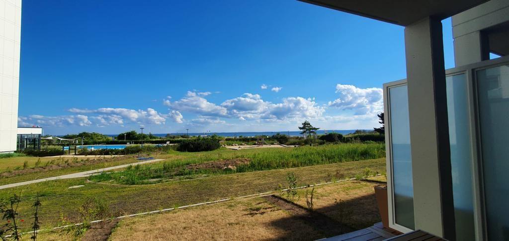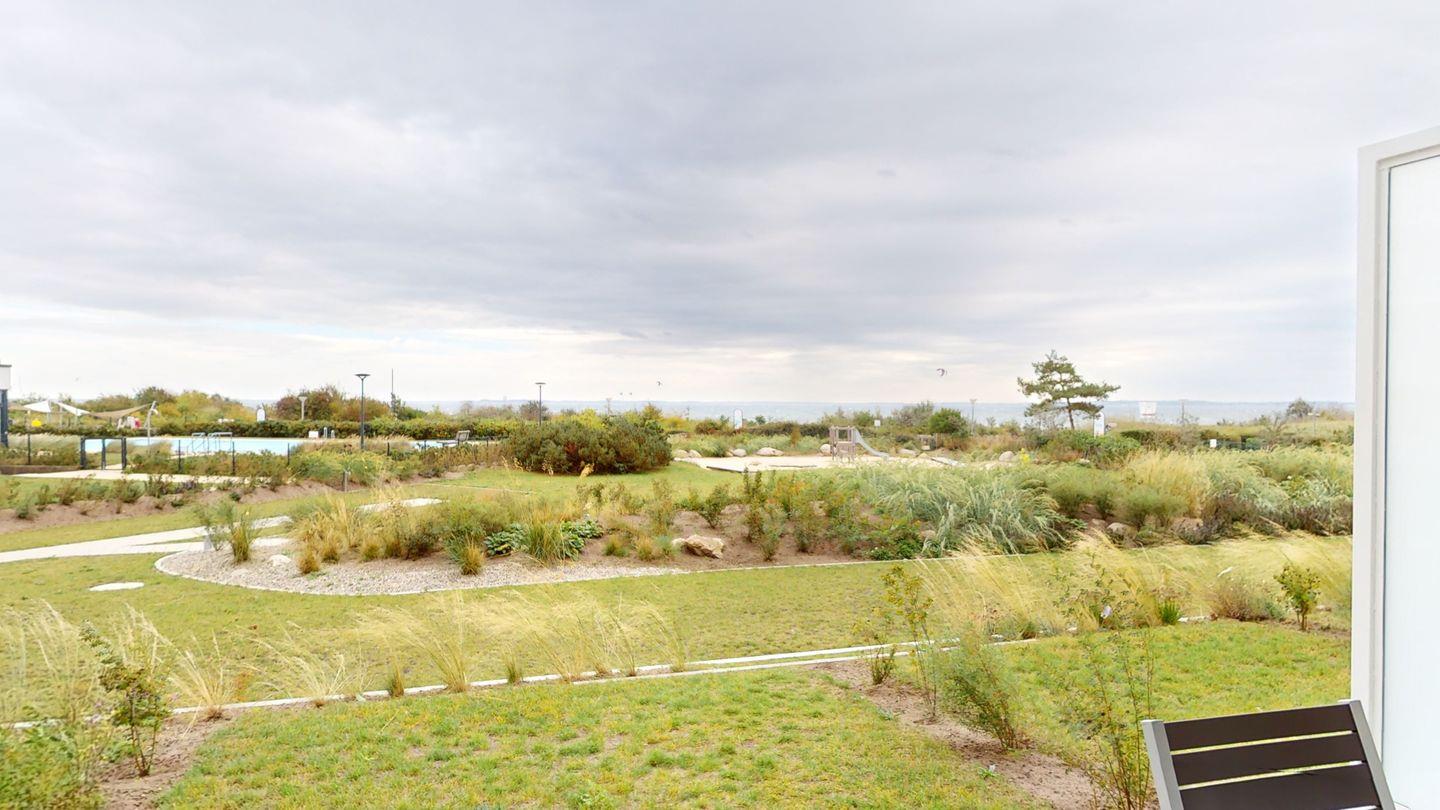 Vor der Terrasse liegt der herrliche Garten mit einem kleinen Sandspielplatz für Kinder. Der Badestrand ist nur wenige Schritte zu Fuß entfernt und von der Terrasse aus sehen Sie das Meer glitzern. In dieser Wohnung ist ein fantastischer Urlaub garantiert!