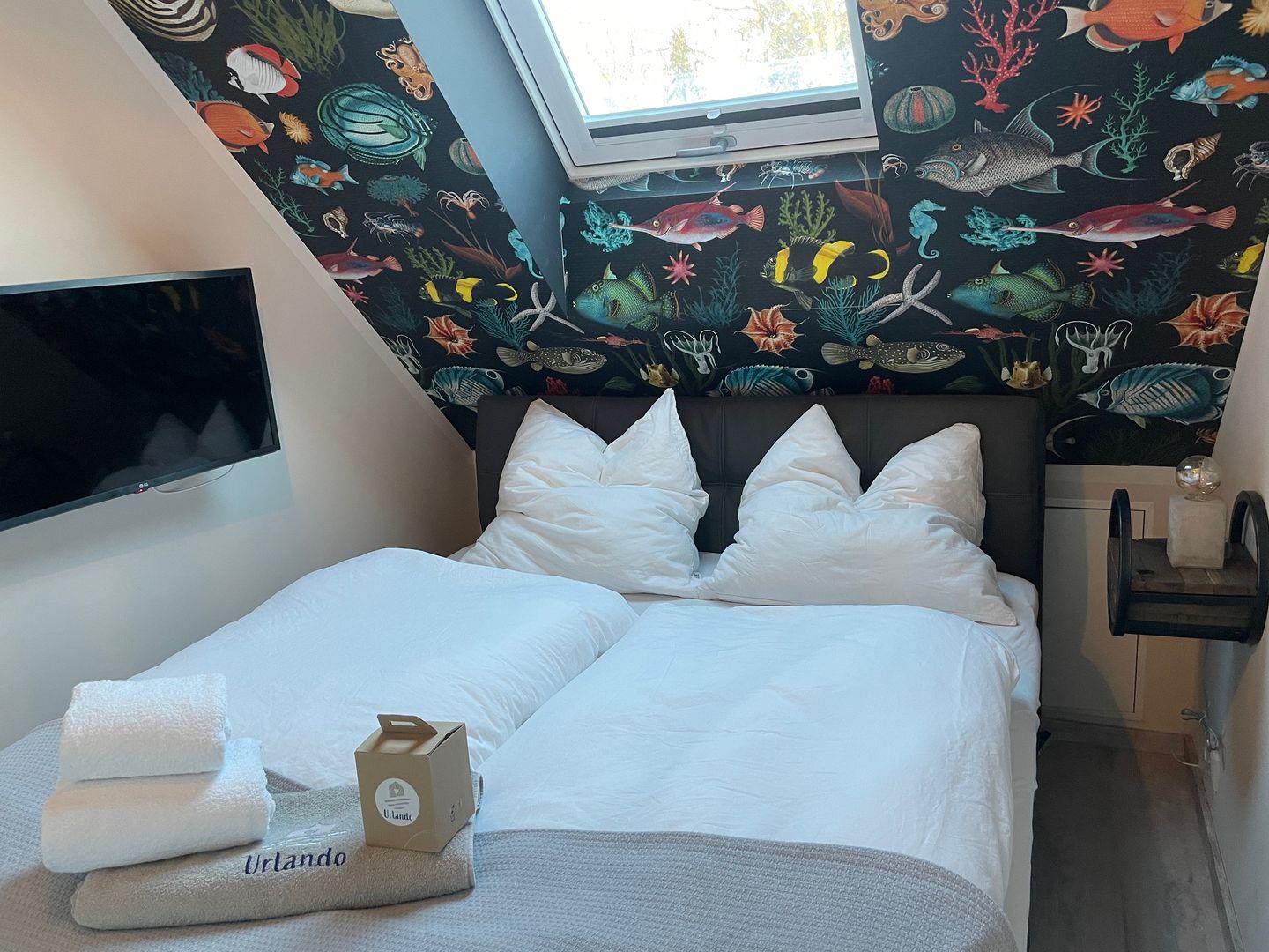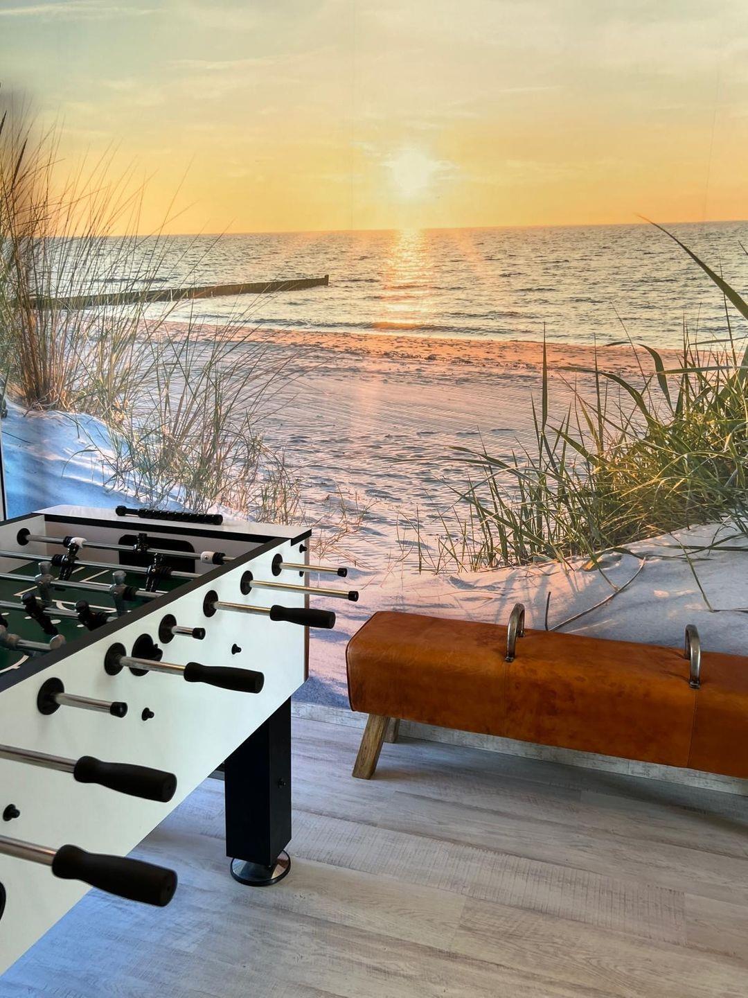 Das 5. Schlafzimmer bietet zusätzlich zwei hochwertige einzelne Matratzen zum Toben oder schlafen, ein Arbeitsplatz mit elektrisch höhenverstellbarem Schreibtisch zum Arbeiten sowie einen großen Gaming-Monitor zum Arbeiten oder Spielen.