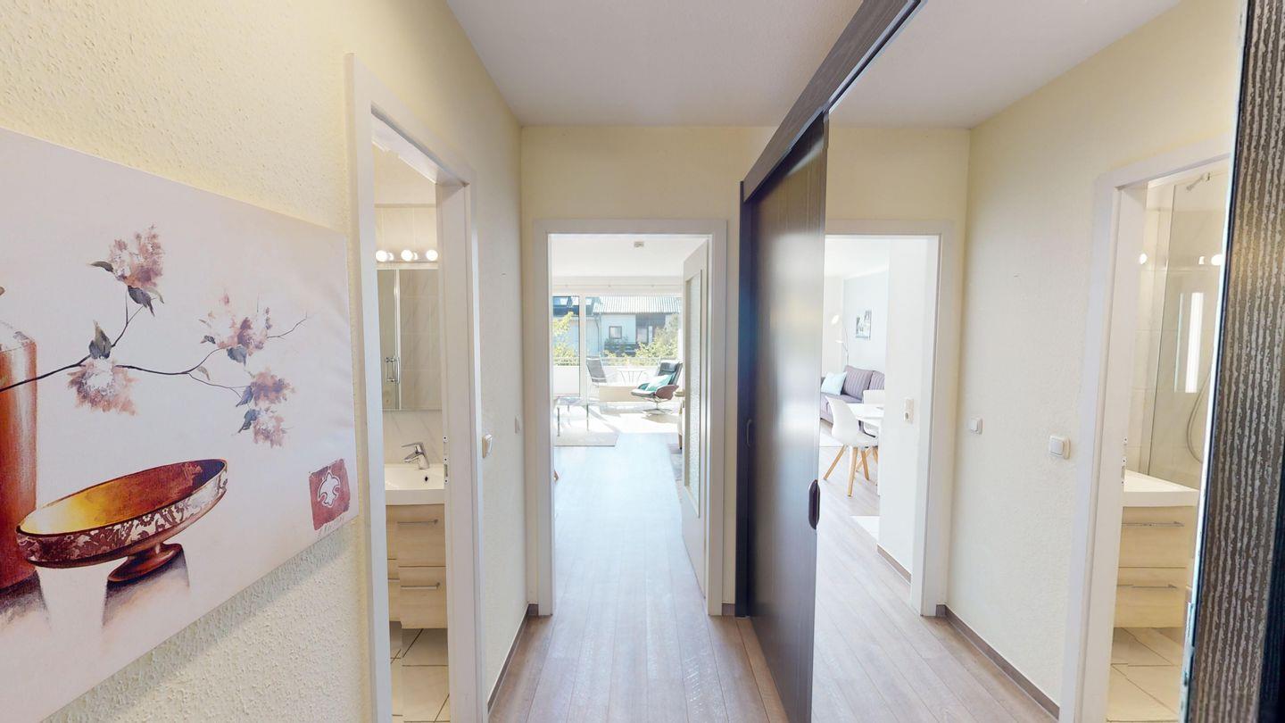 Verbringen Sie erholsame Sonnenstunden auf Ihrem möblierten Balkon.