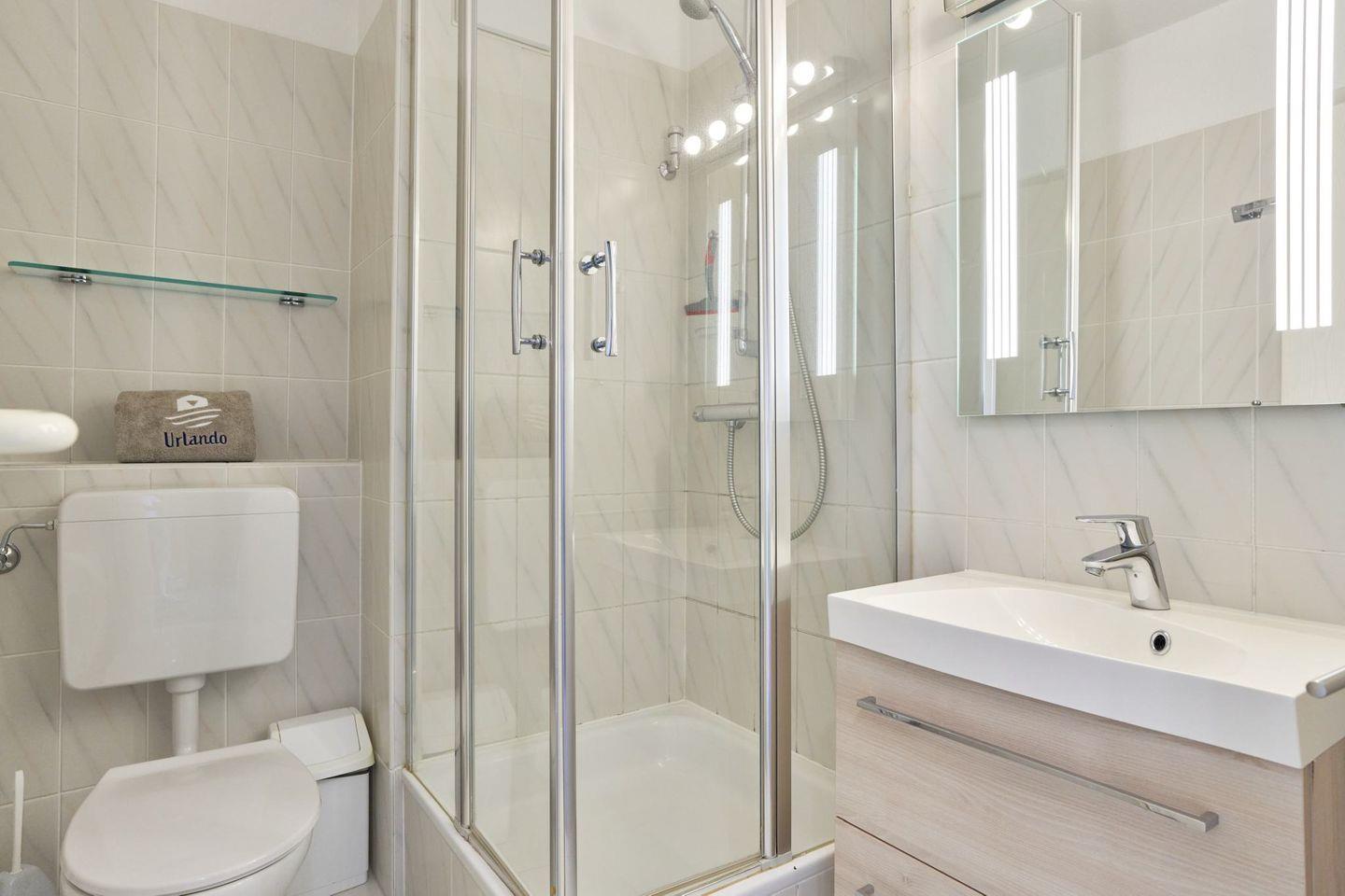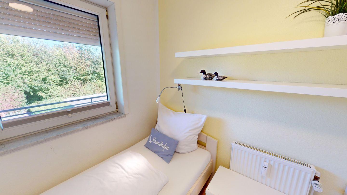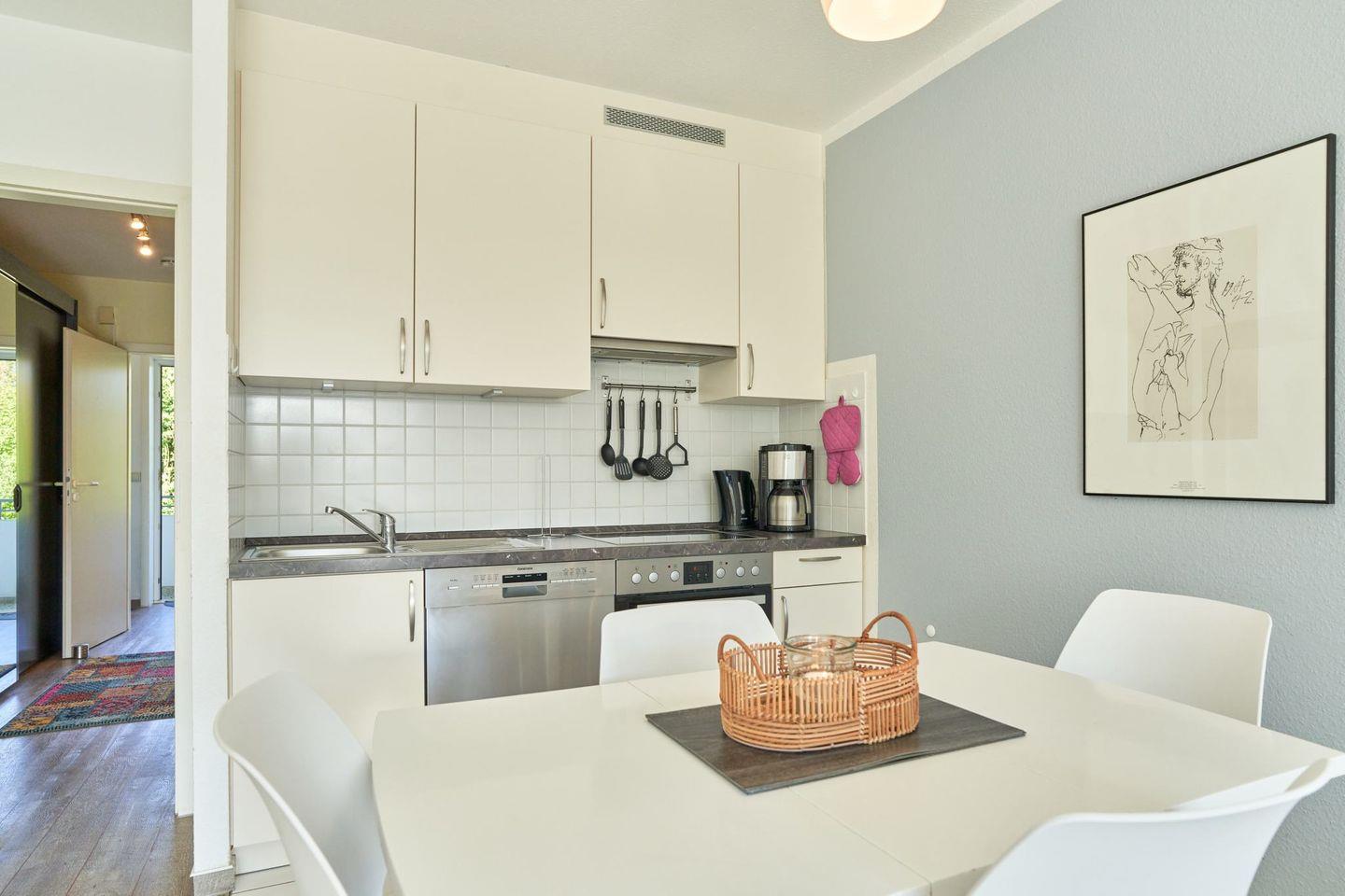 Das helle Wohnzimmer liegt direkt an der offenen Küchenzeile mit schönem Essbereich. Das Sofa im Wohnzimmer verfügt über eine Schlaffunktion und dient als Schlafplatz für zwei Personen. Zusätzlich steht ein separates Schlafzimmer mit zwei Einzelbetten zur Verfügung. Es gibt ein Duschbad mit WC.