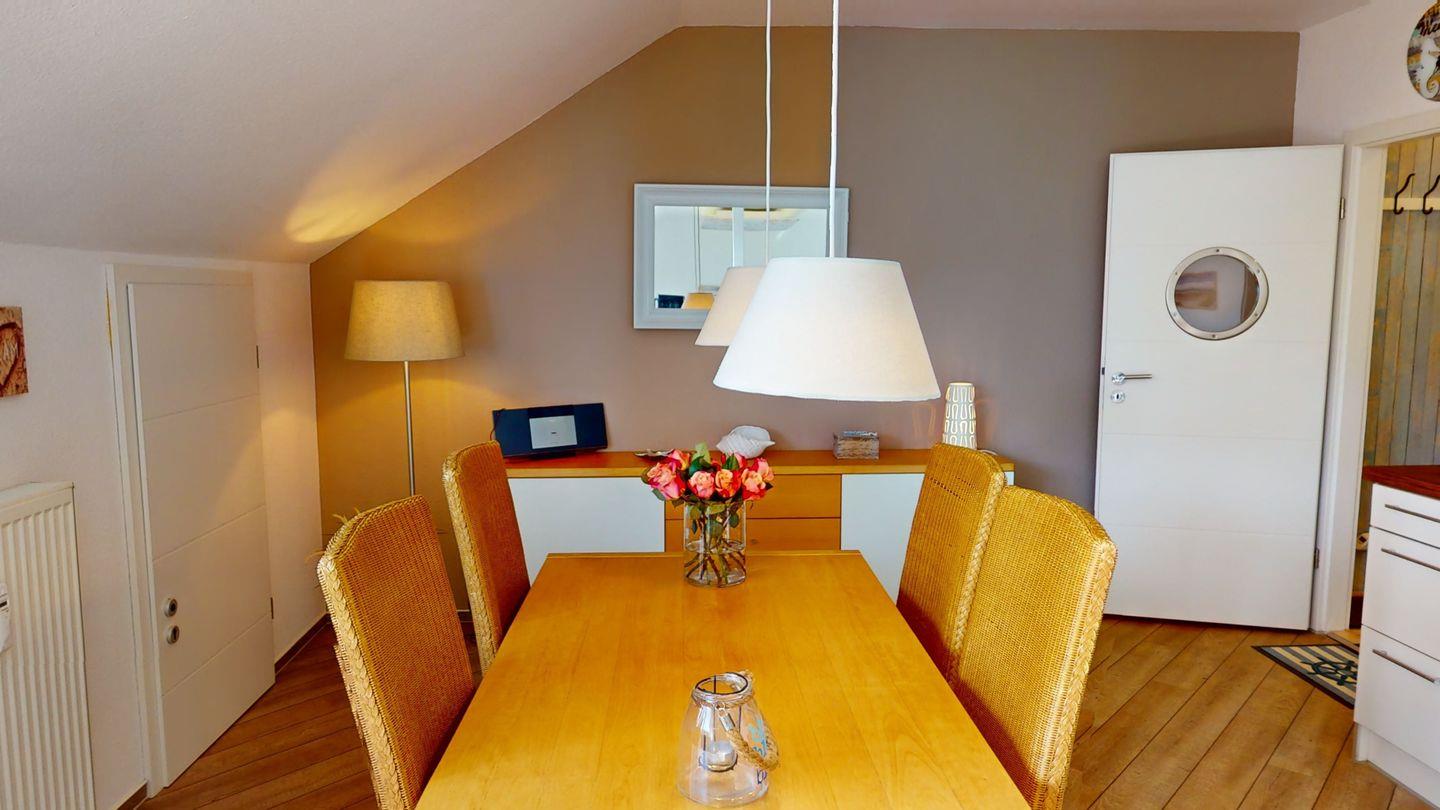 Diese gemütliche, 53 m² große Ferienwohnung im Dachgeschoss bietet Platz für bis zu 4 Personen und auch Ihr Hund ist willkommen. Parken Sie Ihr Auto auf dem wohnungseigenen Außenstellplatz.