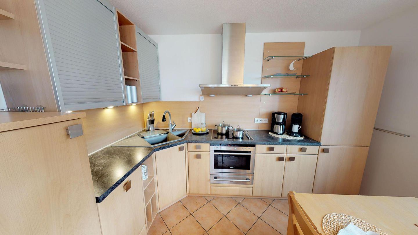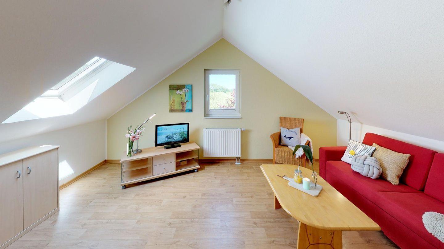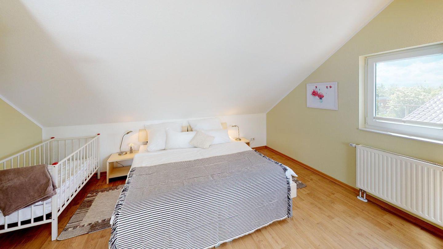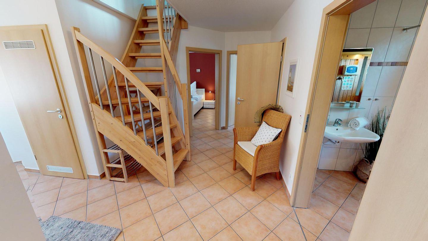 Es erwartet Sie ein großzügiger Wohnbereich mit Kaminofen und gemütlicher Sofagarnitur. Angrenzend liegt die offene Küche mit einem Essplatz. Im Erdgeschoss befinden sich zwei Schlafzimmer mit jeweils einem Doppelbett, ein Gäste-WC sowie ein rollstuhlgerechtes Badezimmer mit einer Sauna. Im Obergeschoss empfängt Sie ein zweiter Wohnbereich mit bequemen Schlafsofa für zwei Personen. Zusätzlich finden Sie hier ein zweites Duschbad und ein drittes, großes Schlafzimmer mit einem Doppelbett.