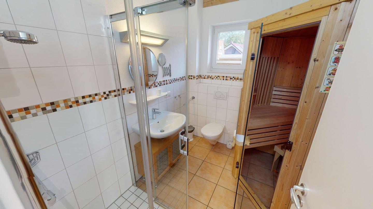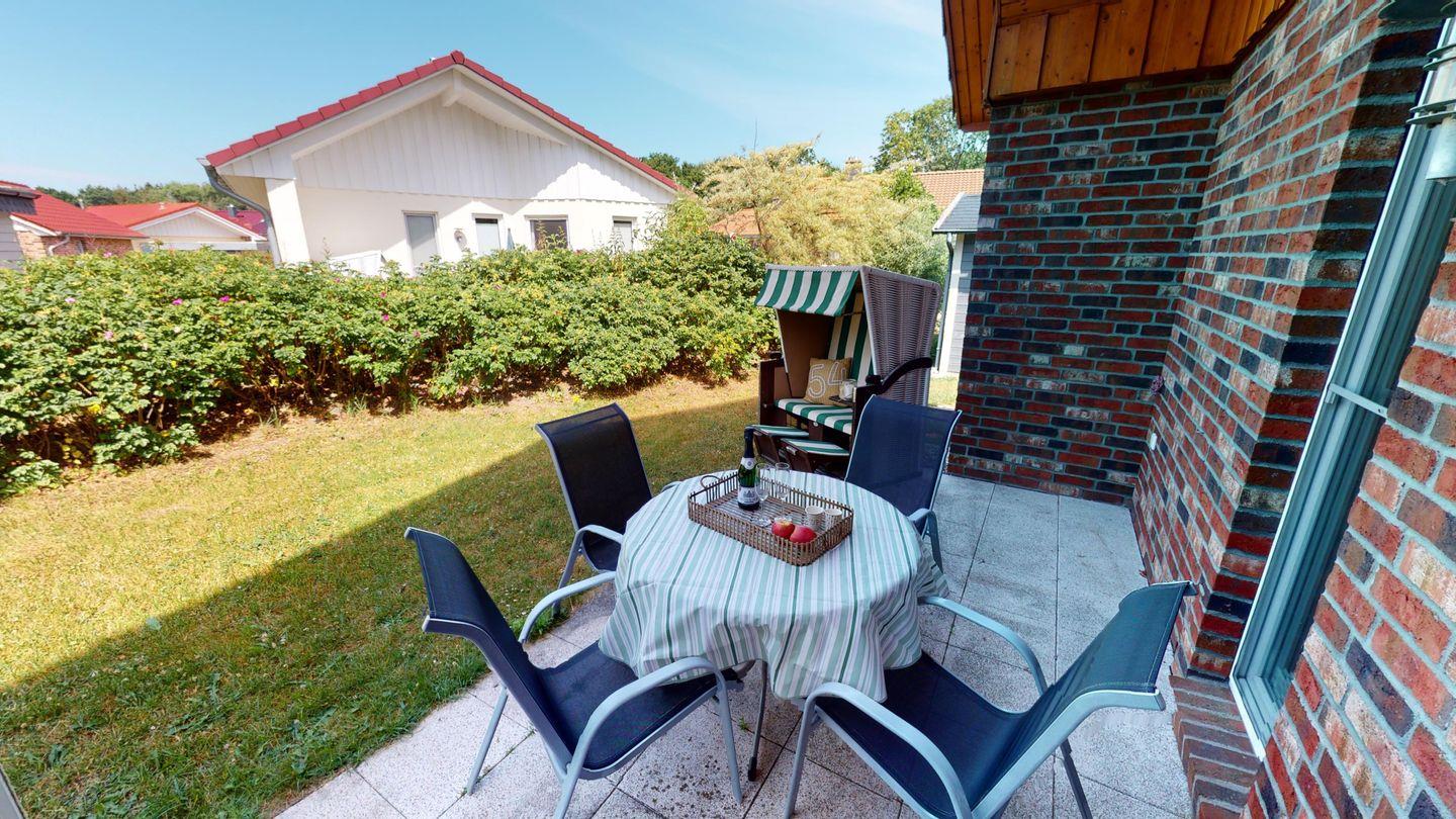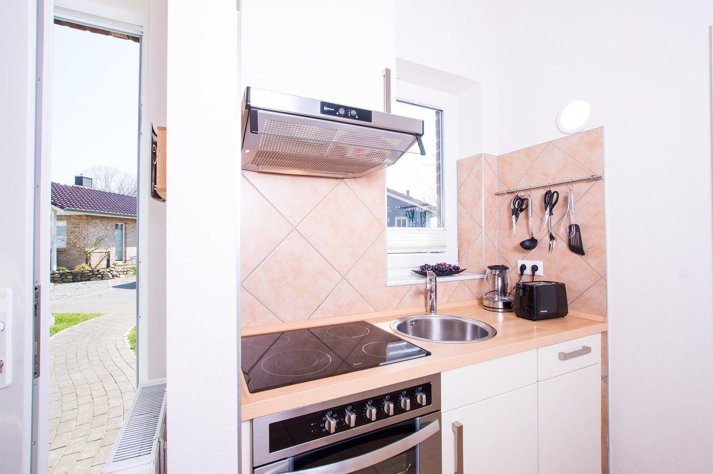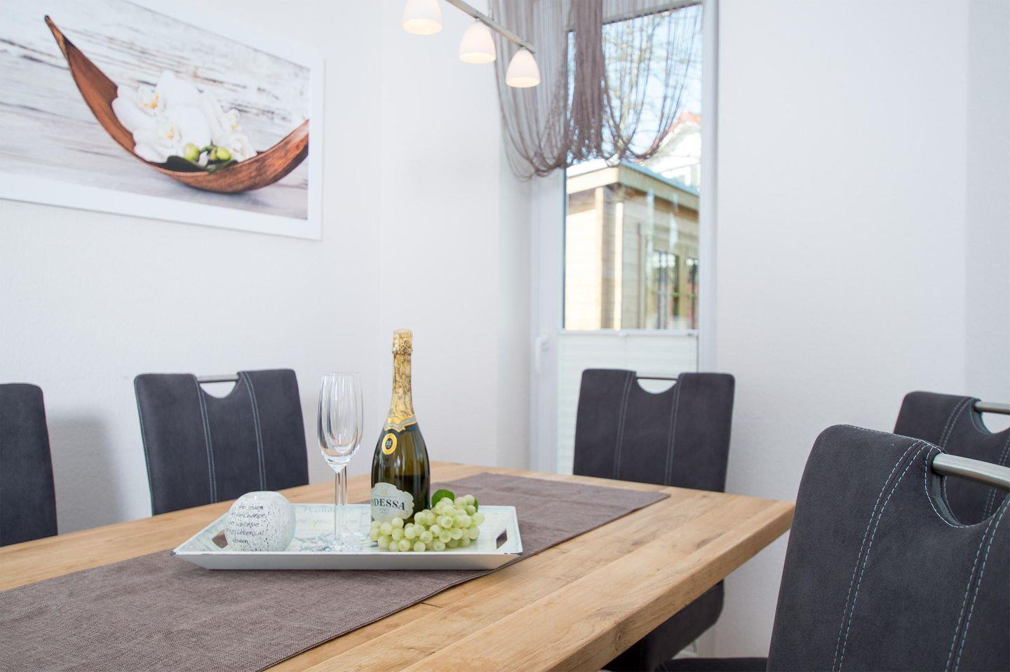 Ein heller, schöner Wohn-/Essbereich mit Kaminofen, zwei Schlafzimmer - eins mit Doppelbett und eins mit zwei komfortablen Einzelbetten - sowie der Garten und die möblierte Terrasse mit Strandkorb und Grill laden zum Urlaub machen ein. In Ihrem Duschbad haben Sie zusätzlich Ihre eigene Sauna. Den Abschluss den Hauses bildet die moderne, gut ausgestattete Küche.