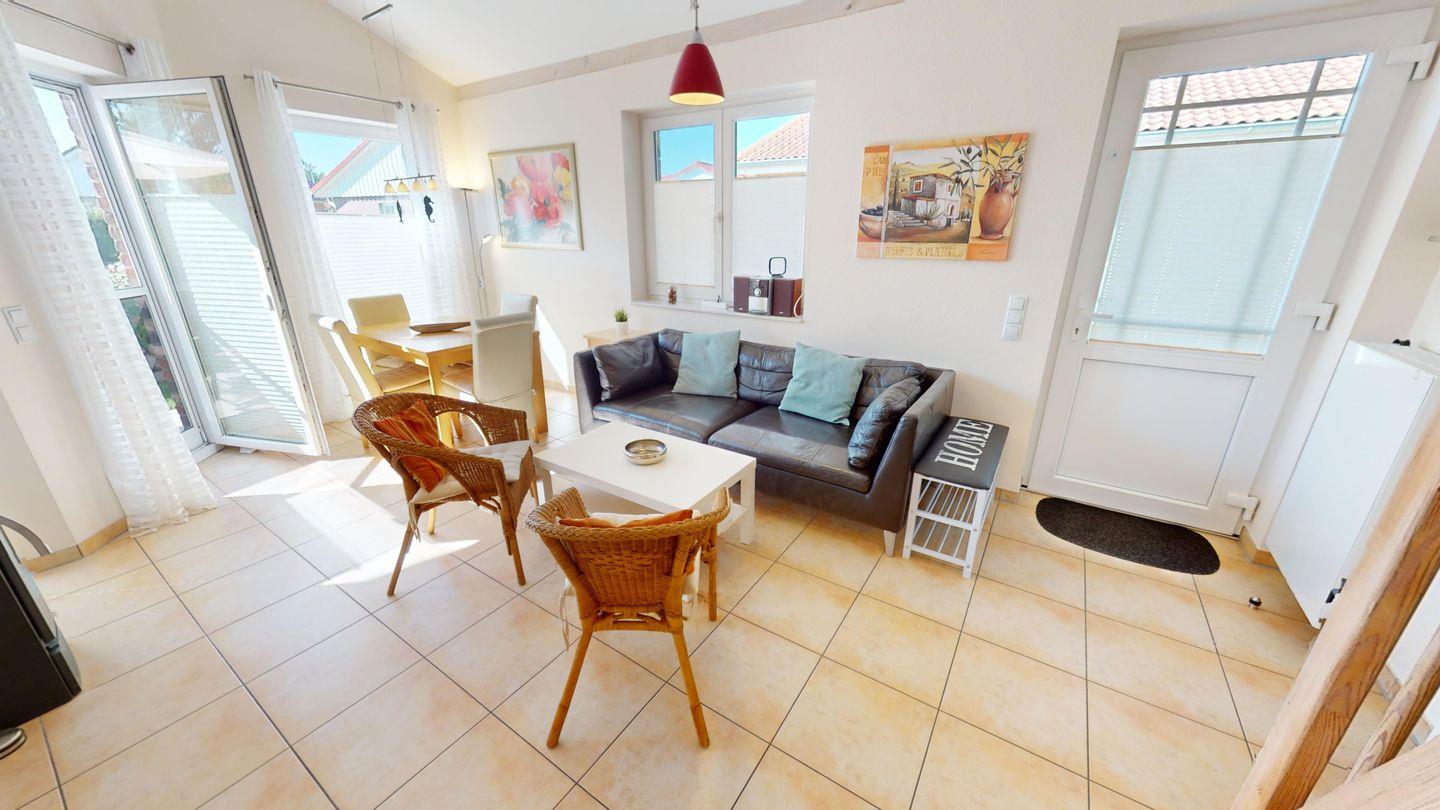 Das 60 m² große Ferienhaus bietet Platz für 4 Erwachsene und 2 Kinder und liegt nur wenige Gehminuten vom Strand entfernt. Auch Ihr Hund ist herzlich willkommen. Ihnen stehen zwei PKW-Stellplätze vor dem Haus zur Verfügung.