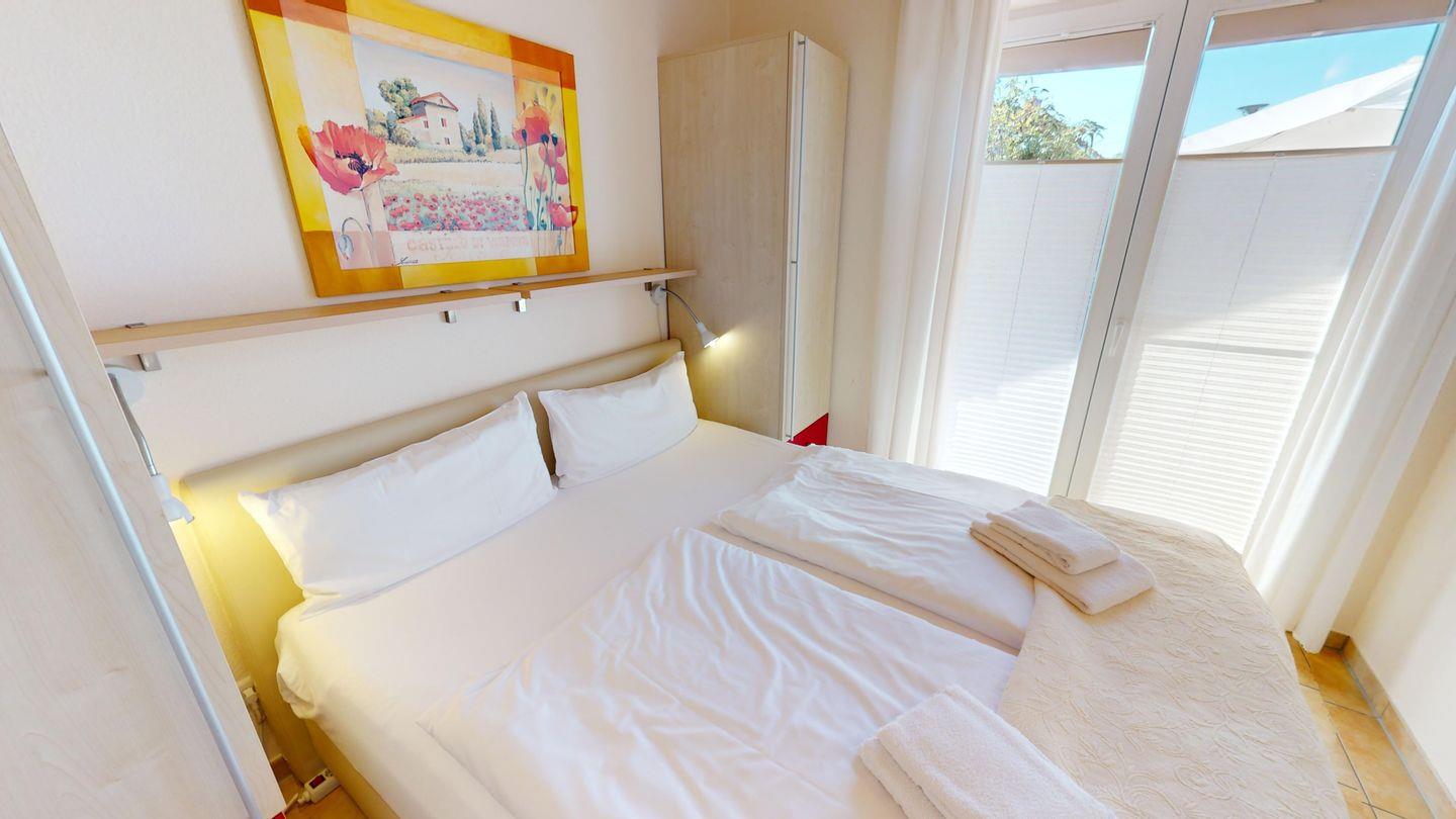 Besonders viel Freude macht der umzäunte Garten mit dem fest installierten Grill und der möblierten Terrasse. Im Gartenhaus ist Platz für mitgebrachte Fahrräder.