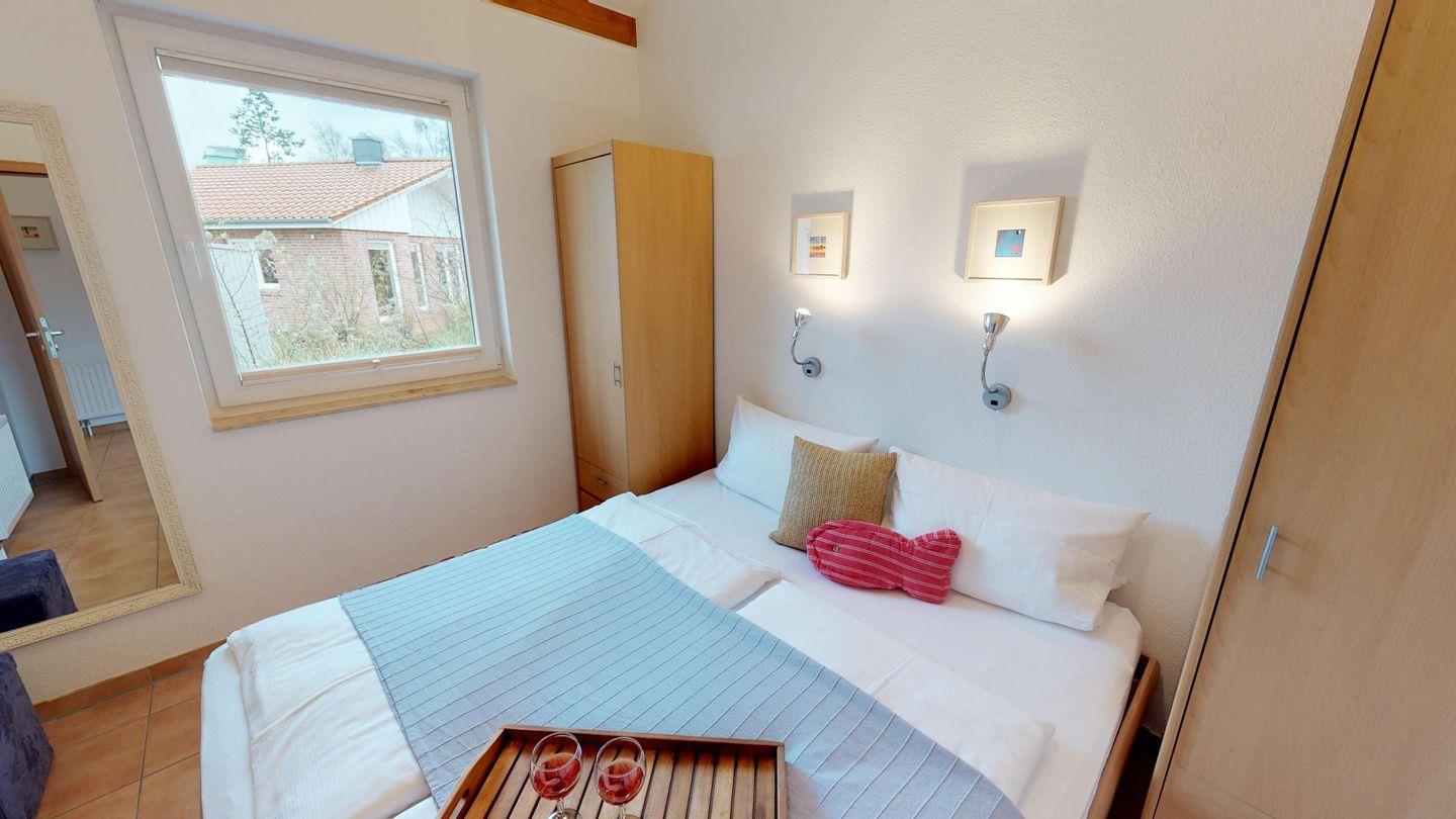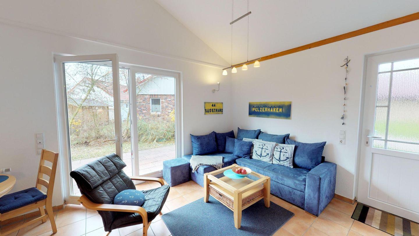 Es erwarten Sie ein großes Schlafzimmer mit Doppelbett sowie zwei kleinere Zimmer mit je einem Einzelbett, welches ausziehbar ist und somit zwei weitere Schlafmöglichkeiten bietet - ideal für Familien mit 2-4 Kindern! Das nordisch-maritim eingerichtete Wohnzimmer mit Kaminofen gibt den Blick frei auf eine offene, moderne Küchenzeile, in der es an nichts fehlt. Ergänzt wird der Wohnbereich durch eine gemütliche Essecke. Im geräumigen Duschbad steht eine Waschmaschine mit Trockner.