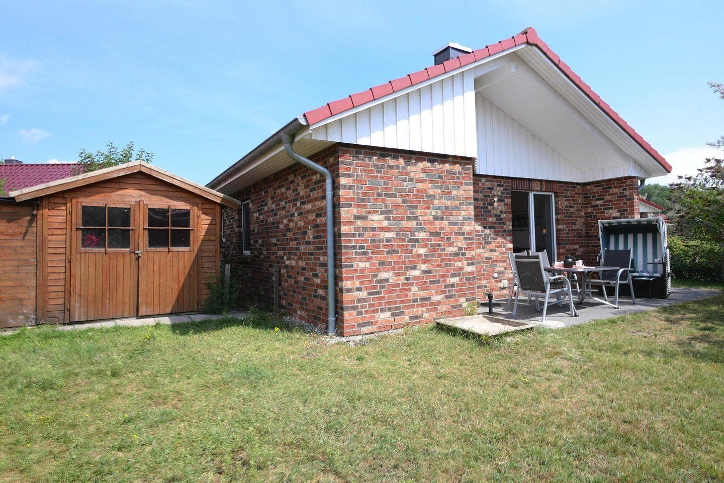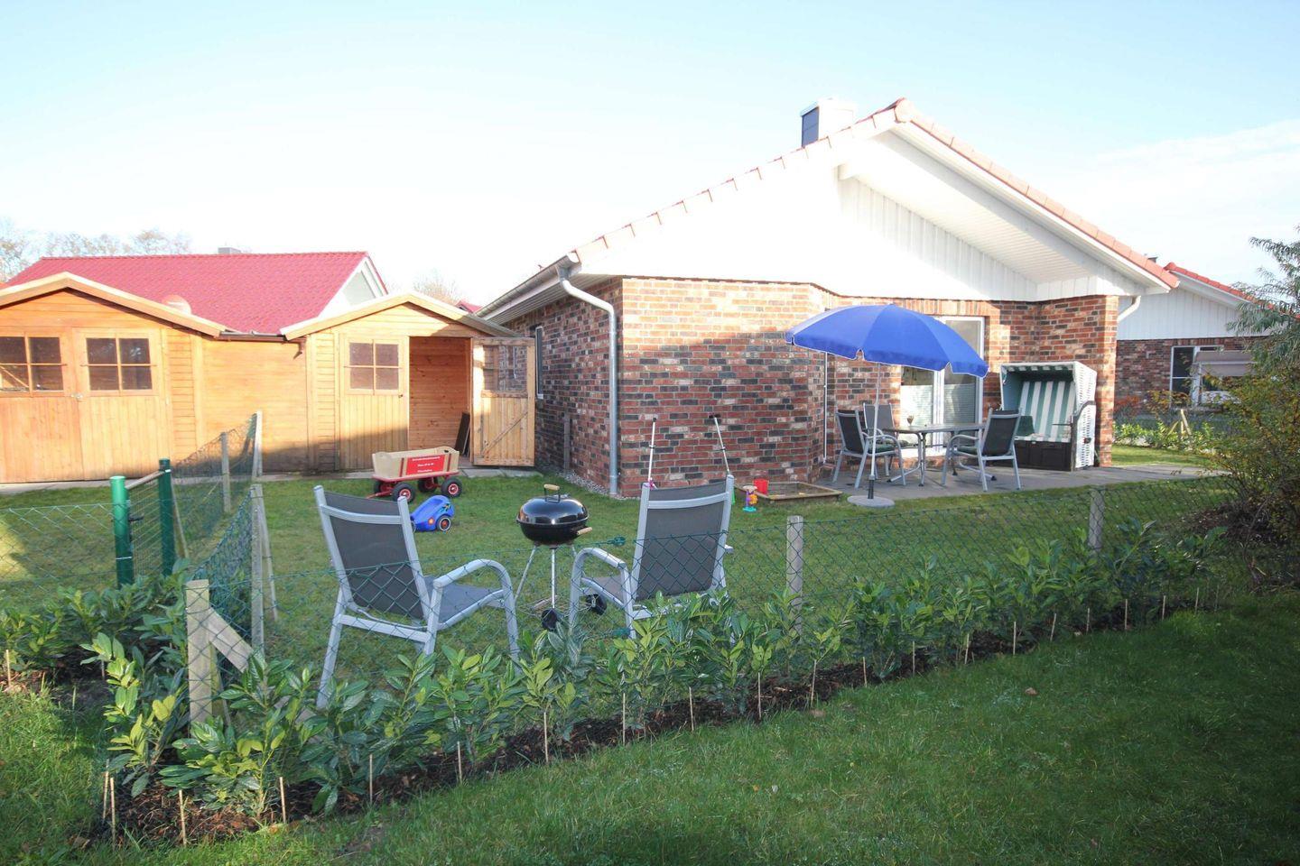 Die möblierte Terrasse mit einem Grill und Strandkorb in Süd-West-Lage lädt zu sonnigen Stunden an der frischen Luft ein.