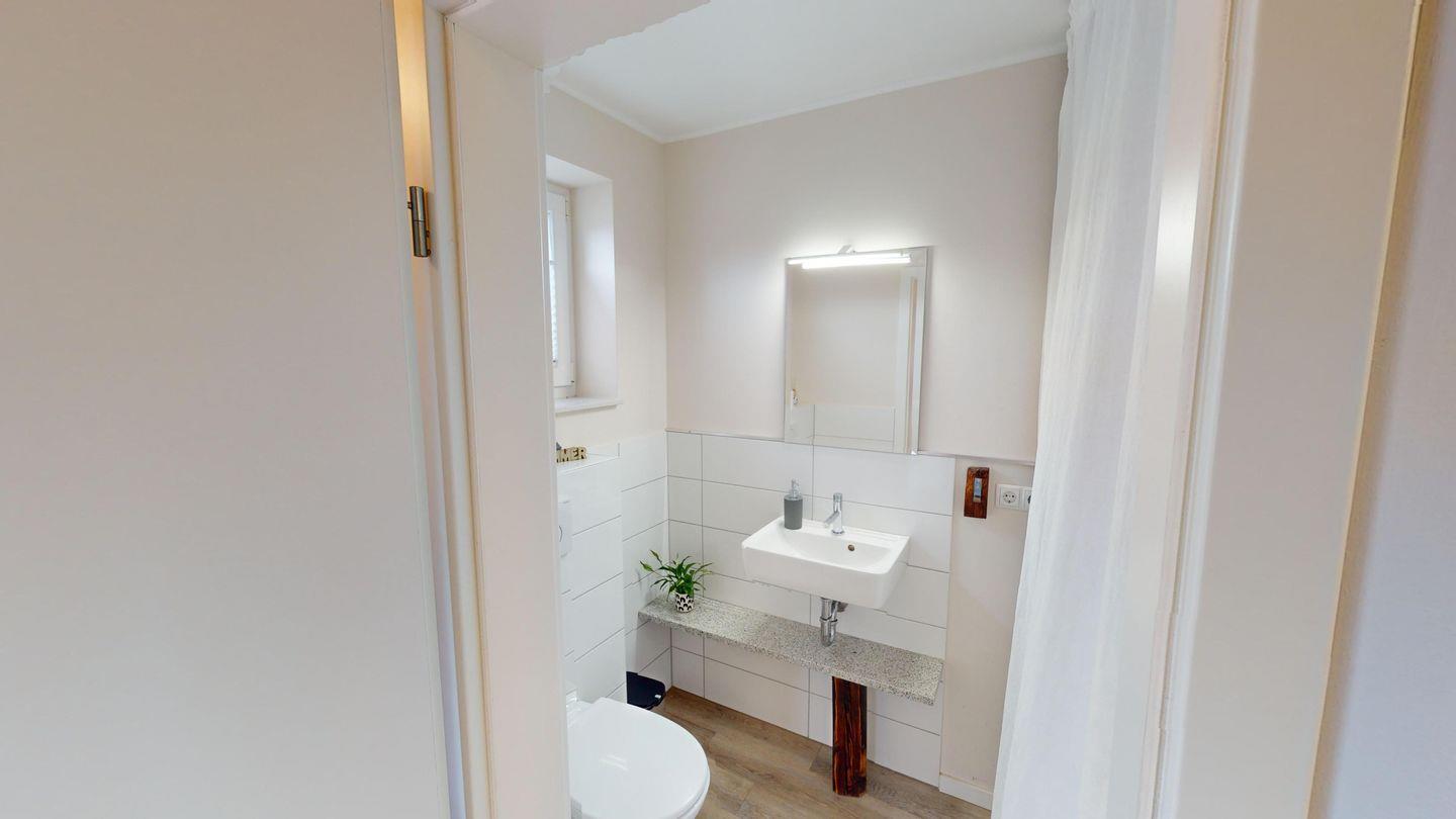 Im Erdgeschoss erwartet Sie ein lichtdurchfluteter Wohn- /Essbereich sowie eine offene, sehr gut ausgestattete Küche. Ein Schlafzimmer mit einem Doppelbett, ein weiterer Raum mit einer Schlafcouch für zwei Personen, ein großzügiges Duschbad sowie ein Gäste-WC vervollständigen das Erdgeschoss. Der Raum mit Schlafcouch kann auch als kleines Wohnzimmer genutzt werden (inkl. TV). Im Raum mit dem Gäste-WC befindet sich auch ein zweiter Kühlschrank inkl. Gefrierfach.