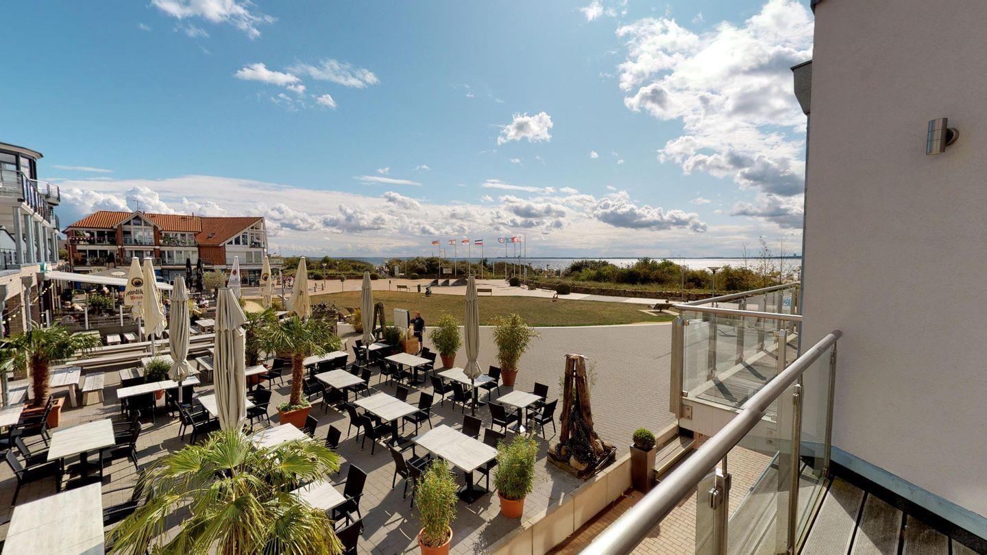 Der möblierte Balkon, mit einem atemberaubenden Blick auf das Meer, lädt dazu ein, die frische Ostseeluft in vollen Zügen zu genießen und den Tag entspannt ausklingen zu lassen.