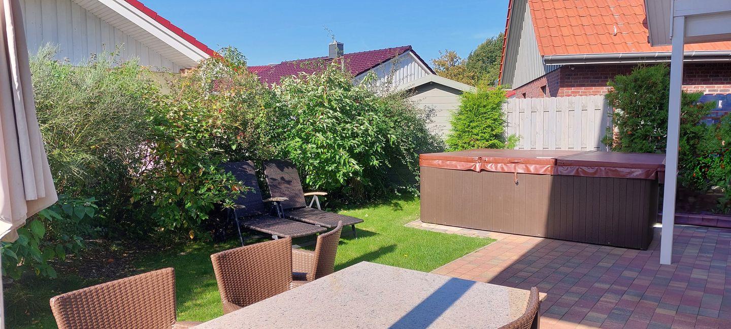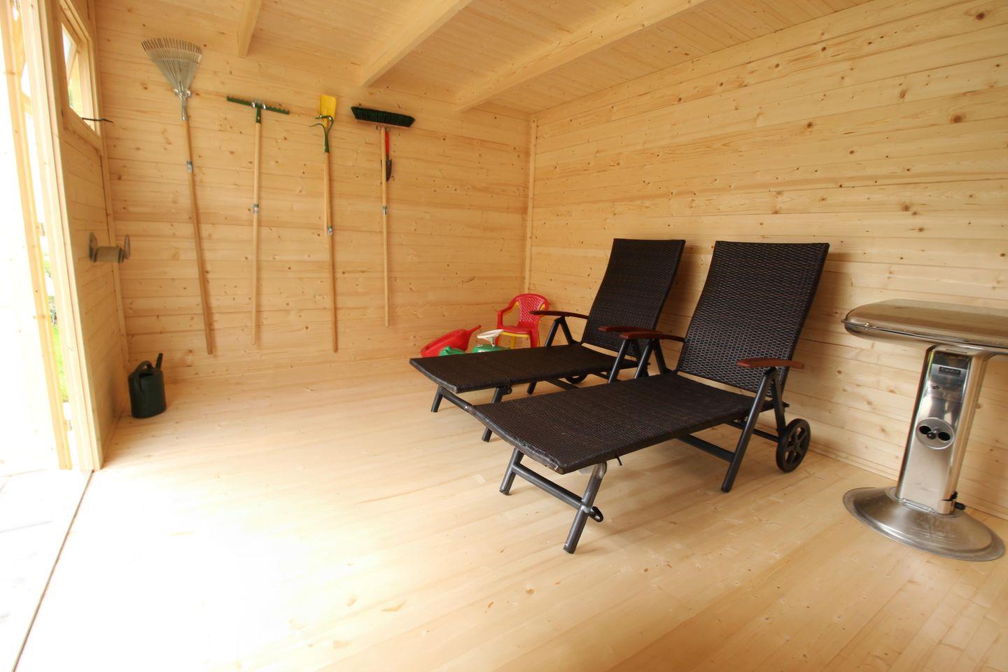 Abgerundet wird das Ferienhaus durch eine Terrasse mit Gartenmöbeln, einem Whirlpool, einer Sauna sowie einem Grill. Im Gartenhaus ist Platz für mitgebrachte Fahrräder.