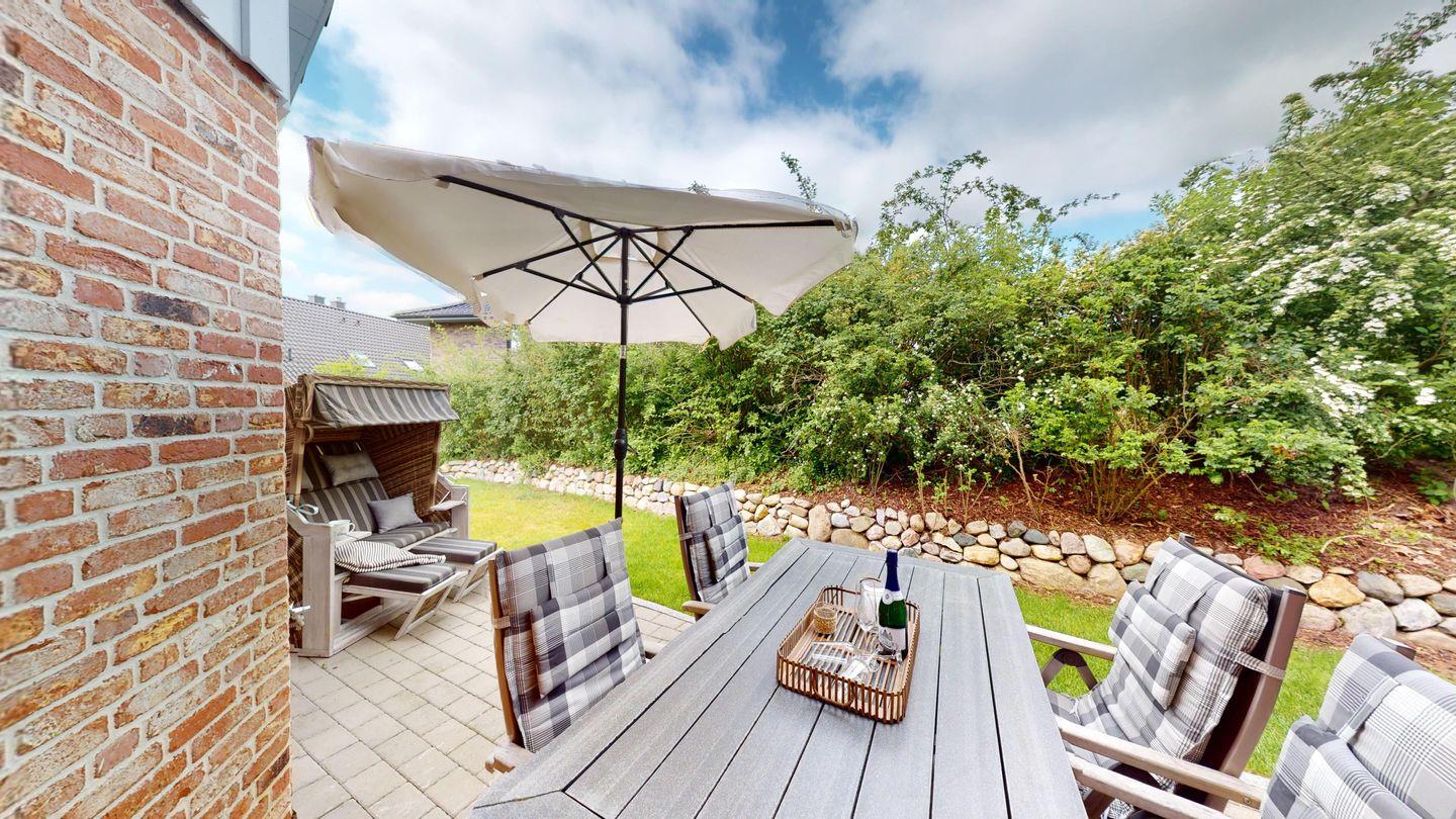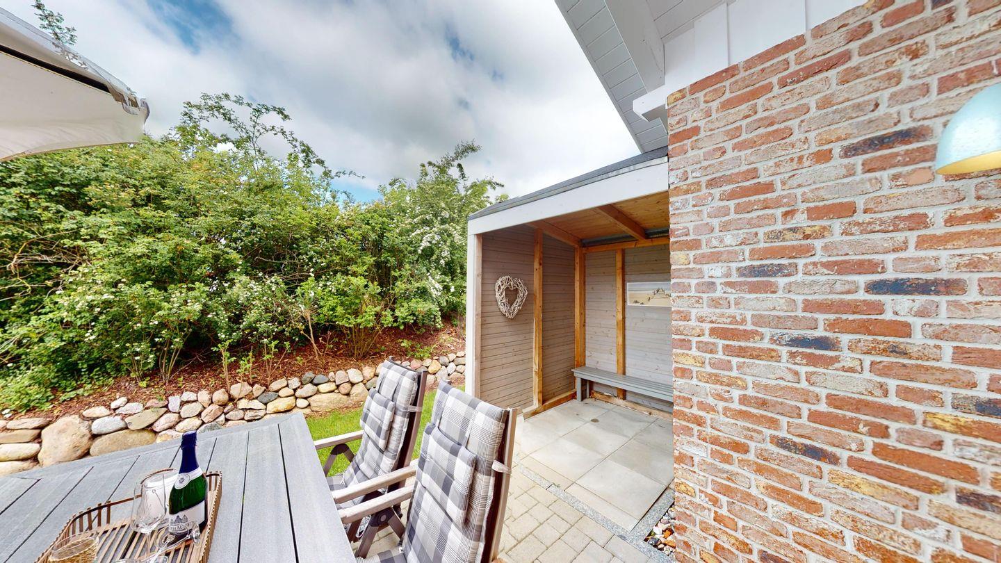 Auf der Terrasse befinden sich Gartenmöbel, ein Grill und ein eigener Strandkorb, die Sie zu sonnigen Stunden an der frischen Luft einladen. Im Gartenhaus ist Platz für mitgebrachte Fahrräder sowie Wassersportgeräte.