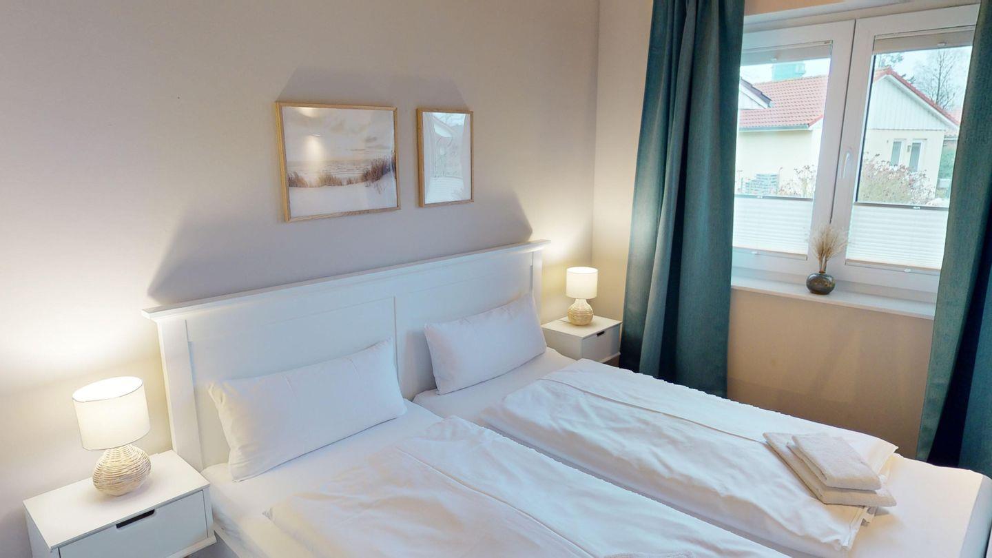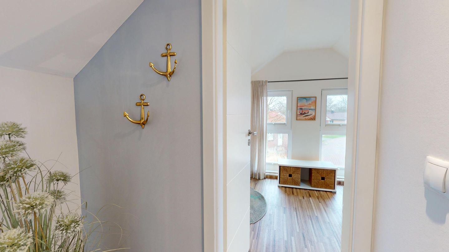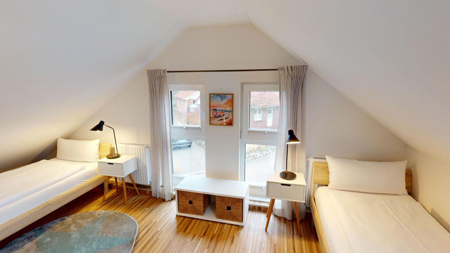 Im Obergeschoss befindet sich ein großzügiger Raum mit zwei Einzelbetten – ideal für Kinder, Jugendliche oder Freunde.