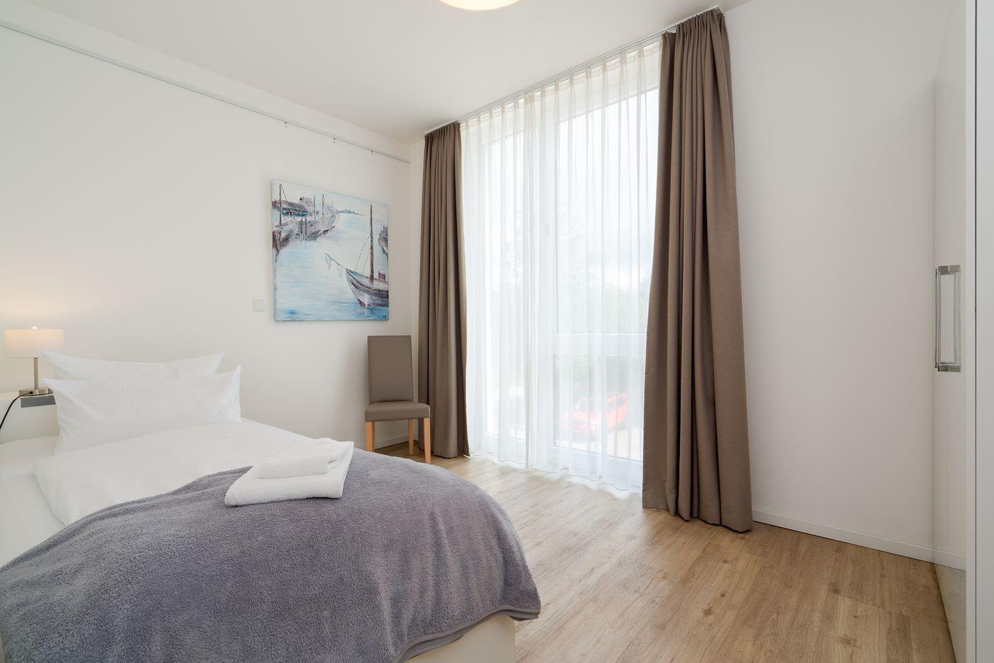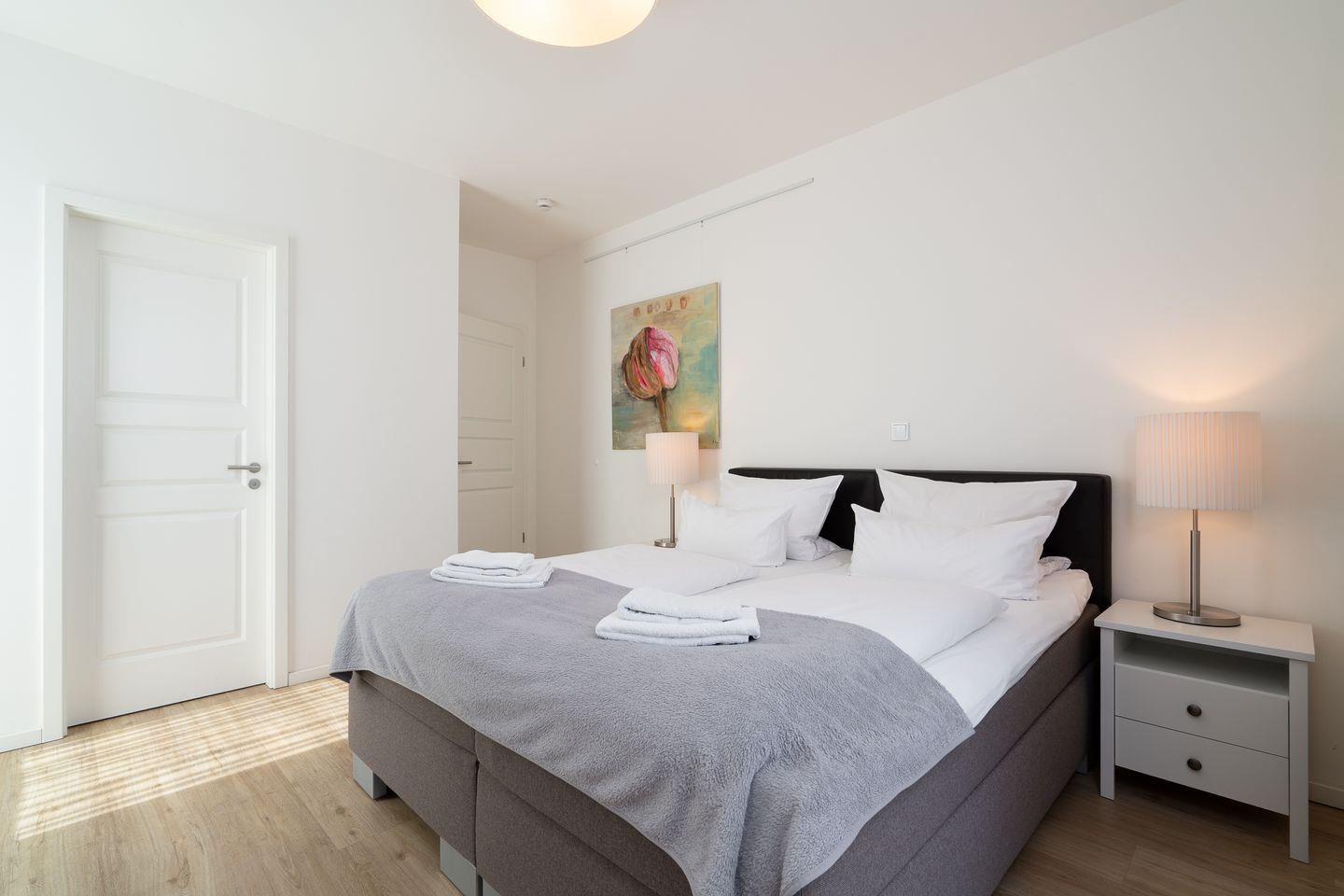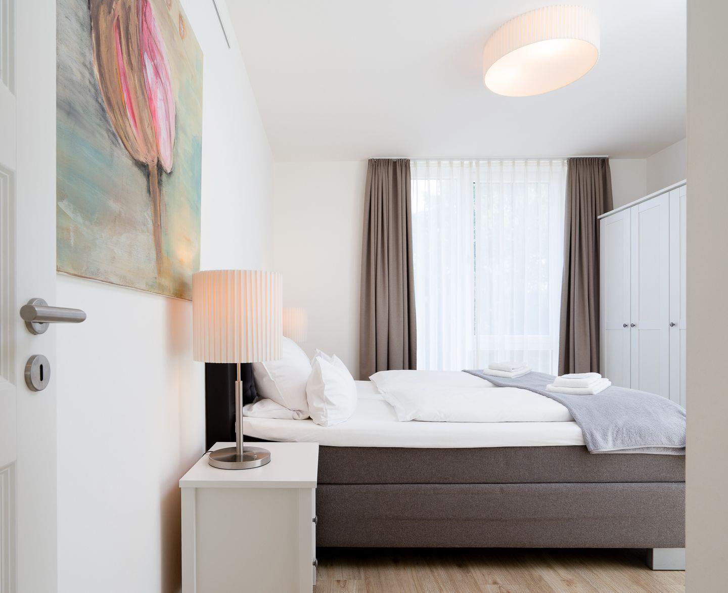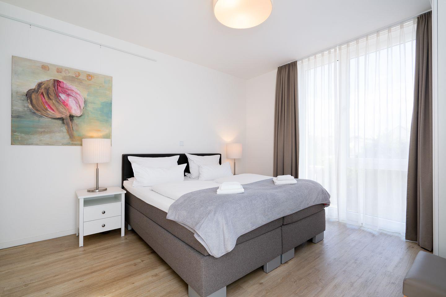Diese helle, moderne 3-Zimmer-Ferienwohnung ist perfekt geeignet für einen erholsamen Urlaub für bis zu 4 Personen. Ihr Auto steht während des Urlaubs sicher in der Tiefgarage.