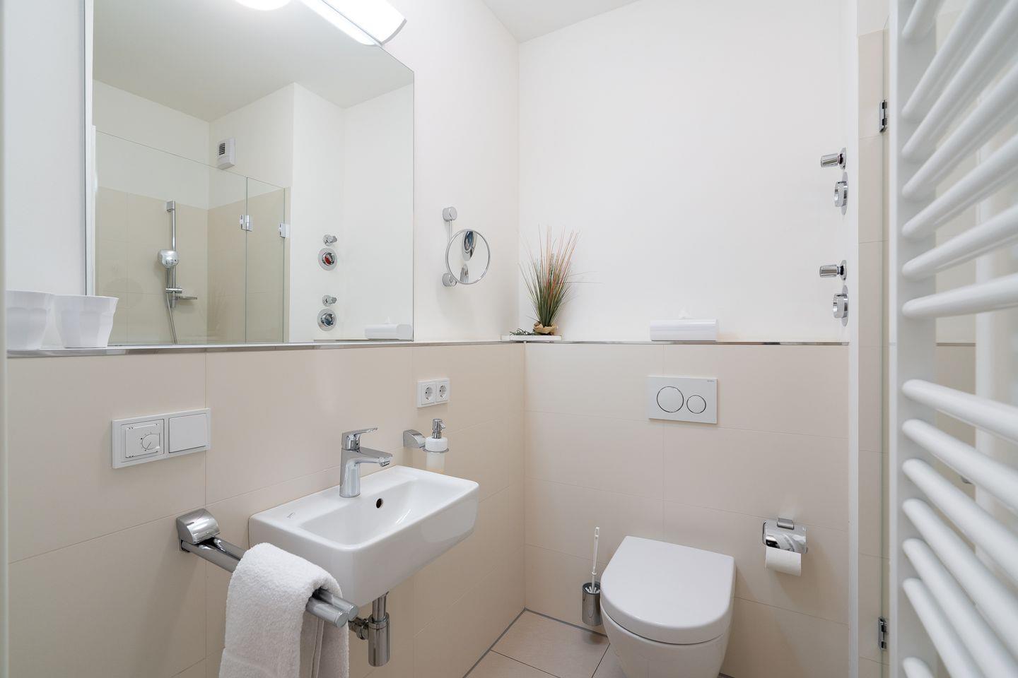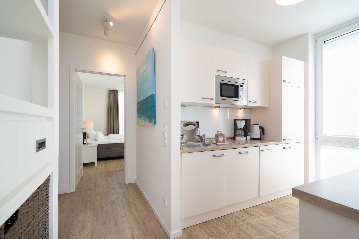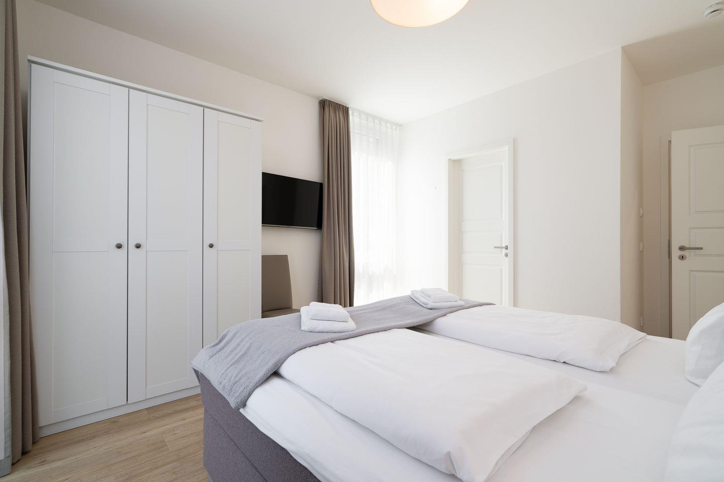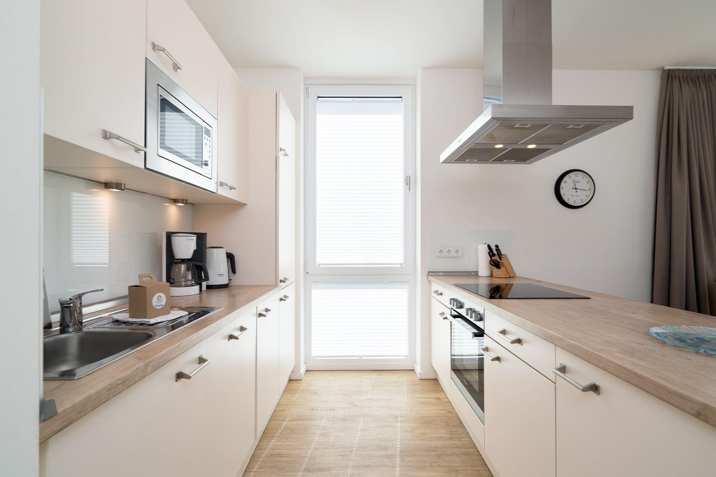 Diese helle, moderne 3-Zimmer-Ferienwohnung ist perfekt geeignet für einen erholsamen Urlaub für bis zu 4 Personen. Ihr Auto steht während des Urlaubs sicher in der Tiefgarage.