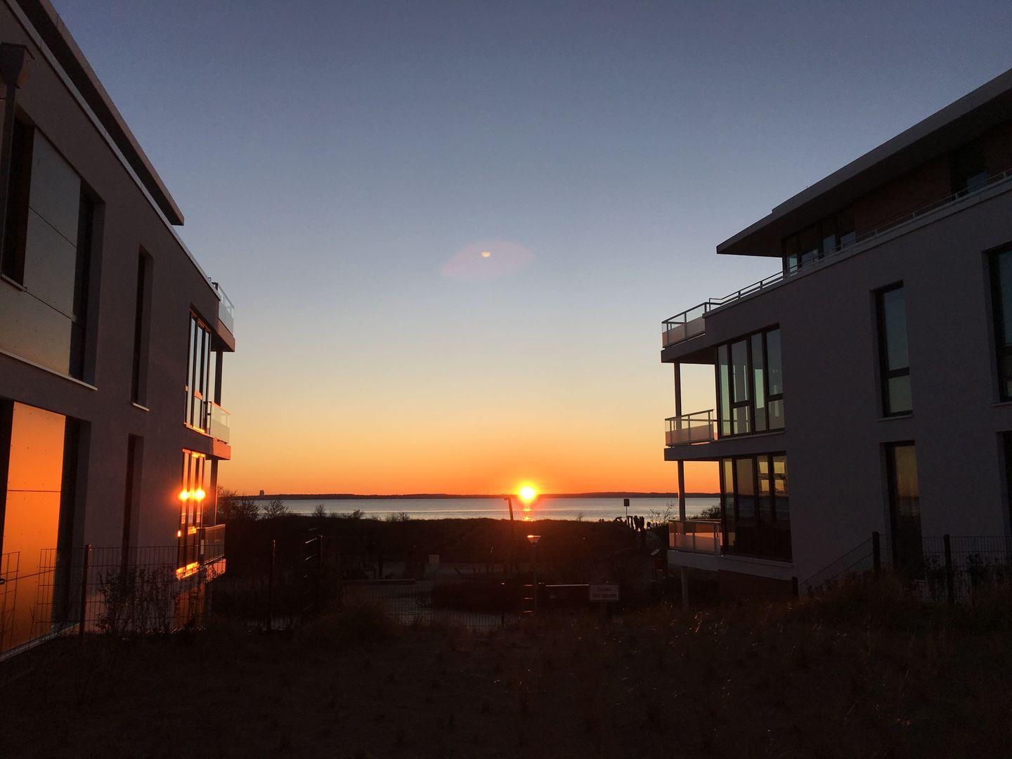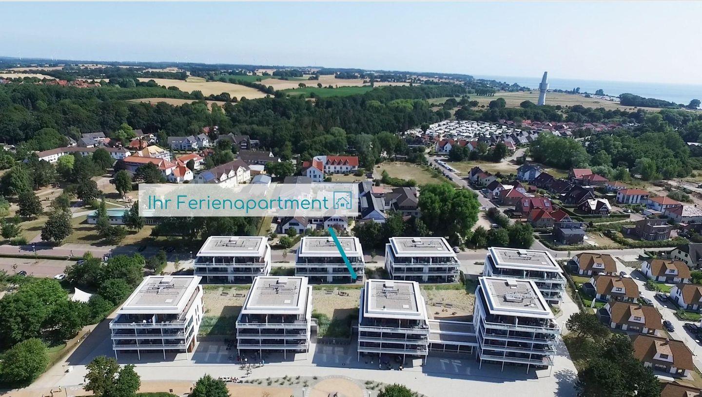 Die Wohnung befindet sich in der 1. Etage von Haus B in der Ferienanlage "Südkap" und liegt ebenerdig zum Innenhof in Richtung Strand mit einer eigenen Terrasse und sogar eingeschränktem Meerblick.
