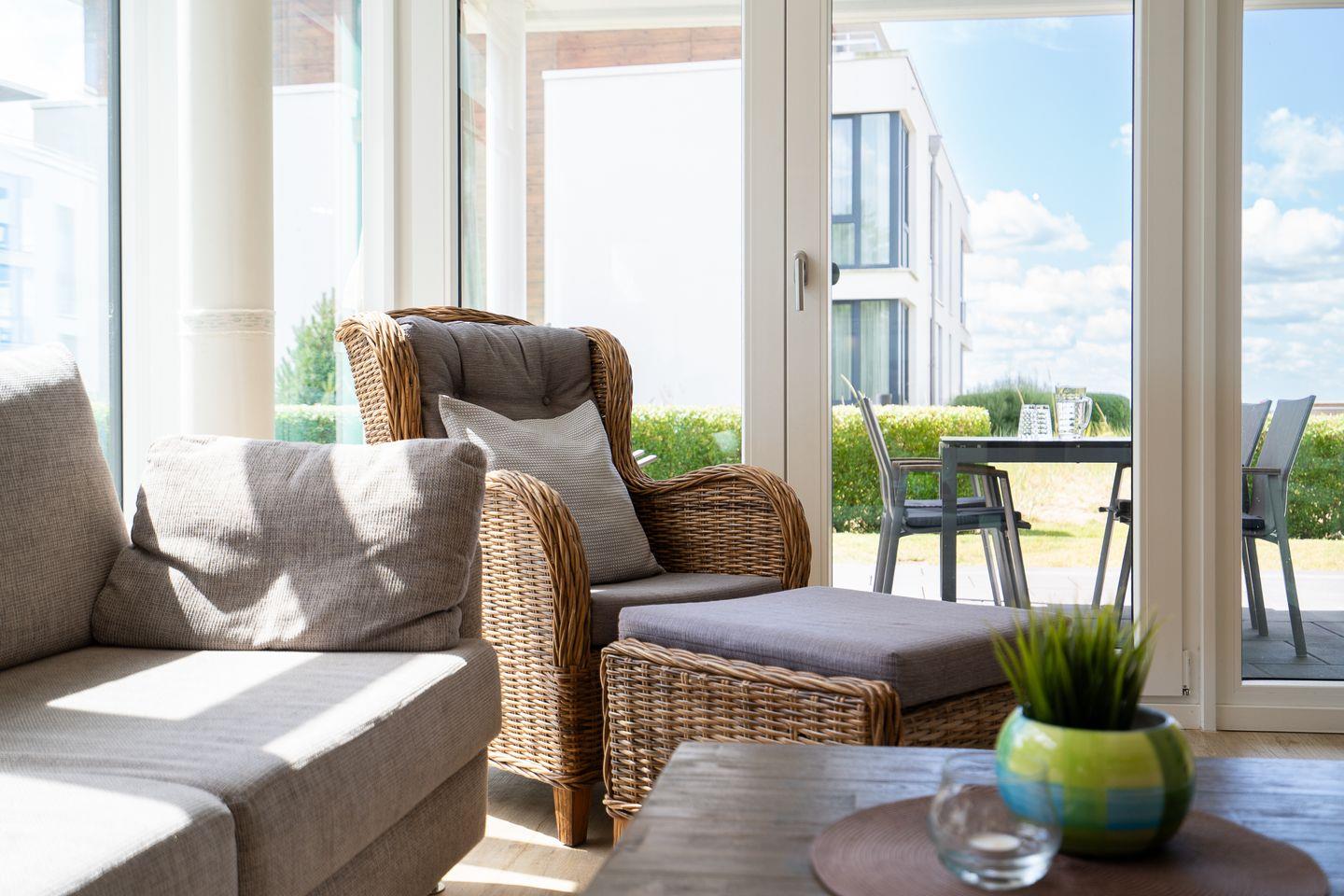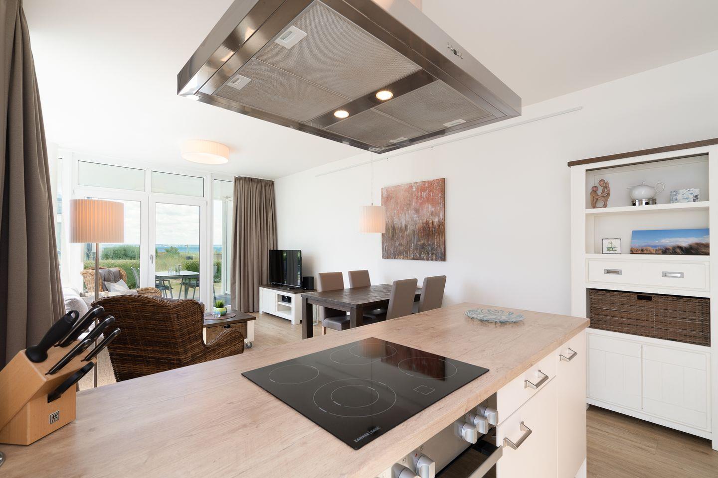 Moderne Ferienwohnung für 4 Personen in toller Strandlage mit zwei Schlafzimmern, Terrasse und Meerblick - allergikerfreundlich