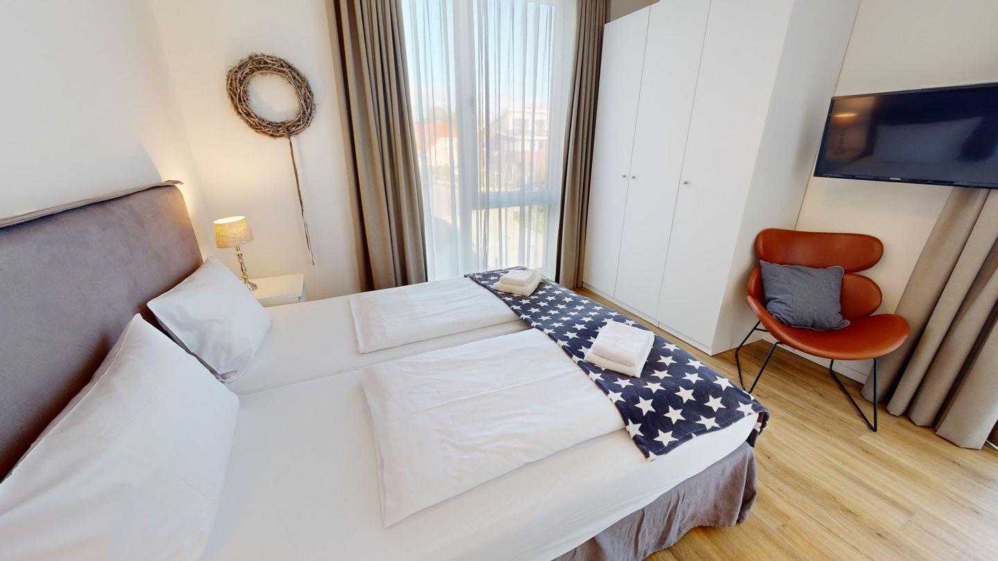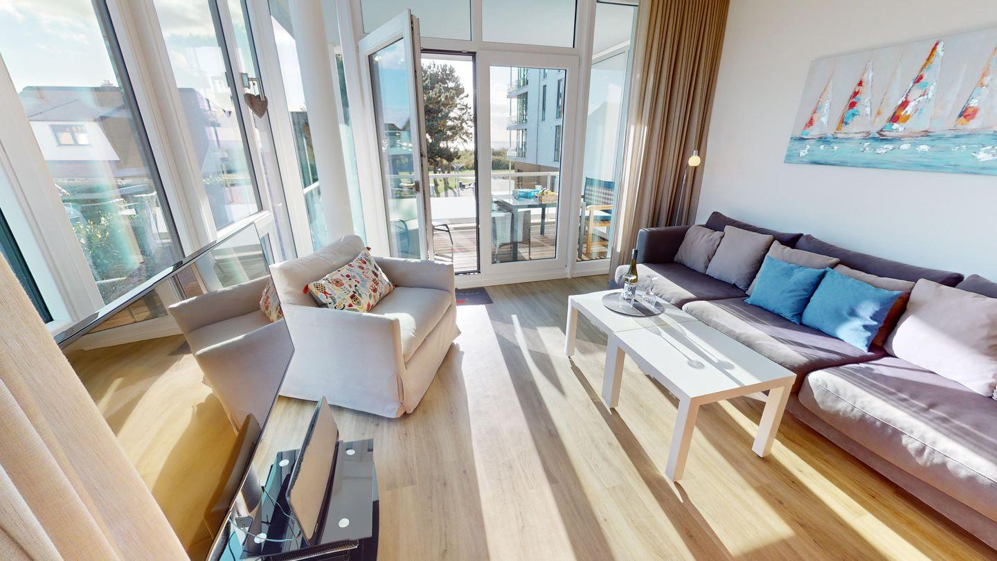 Diese moderne 3-Zimmer-Wohnung liegt in zweiter Reihe zur Promenade, nur wenige Schritte vom Strand entfernt. Neben einem Balkon, auf dem Sie die Sonne genießen können, bietet die Unterkunft auch einen eingeschränkten Meerblick. Verbringen Sie wundervolle Stunden an der frischen Ostseeluft.