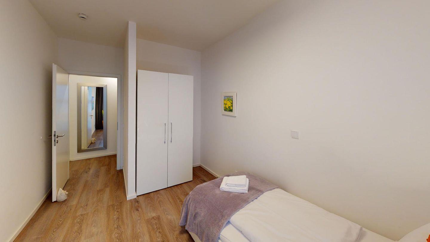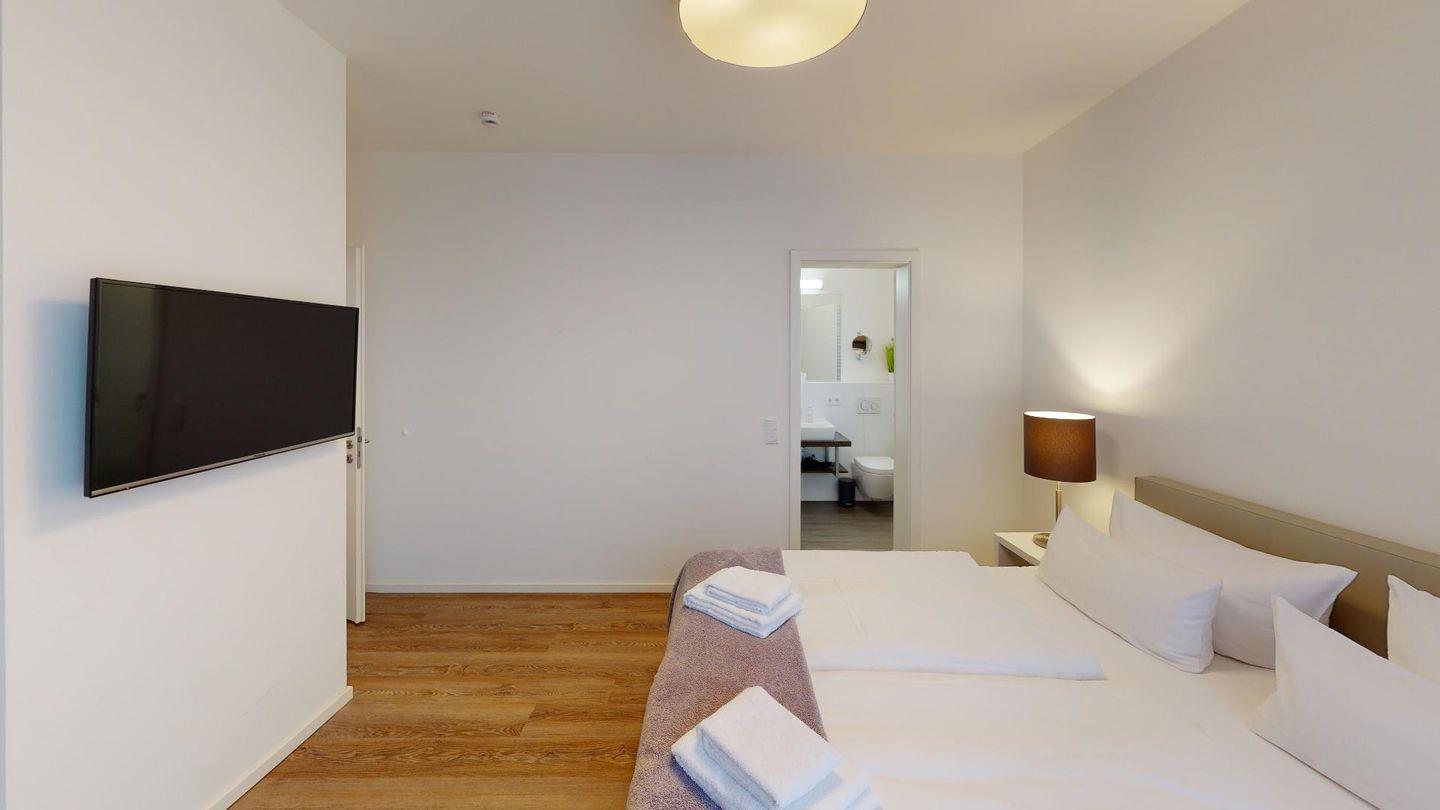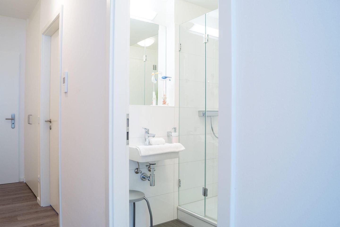 Durch die zwei Schlafzimmer können bis zu vier Personen hier einen entspannten Urlaub verbringen. Eines der Schlafzimmer ist mit einem komfortablen Boxspringbett-Doppelbett, einem großen Kleiderschrank und einem Flat-TV eingerichtet und hat ein eigenes Bad mit Badewanne. Das zweite Schlafzimmer verfügt über ein Einzelbett mit ausziehbarem "Kojenbett" sowie einem großen Kleiderschrank. Ein zusätzliches Duschbad bietet großen Komfort.