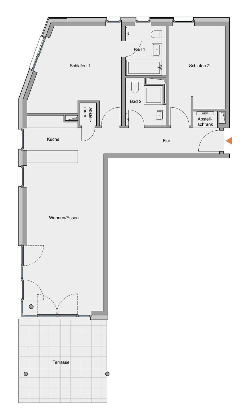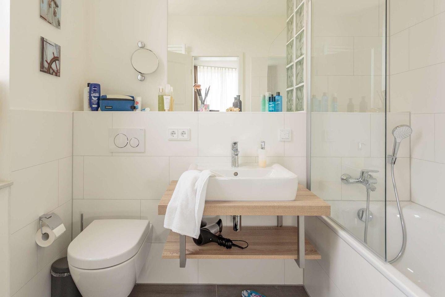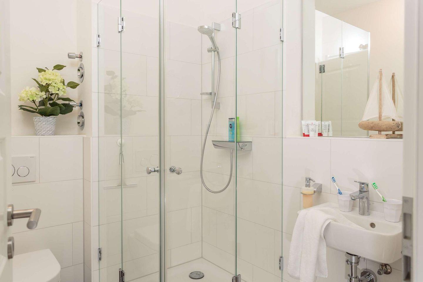 Die 85 m² Wohnfläche verteilen sich auf ein lichtdurchflutetes Wohnzimmer mit Essbereich und einer voll ausgestatteten Küche. Zusätzlich gibt es zwei Schlafzimmer, jeweils mit einem Boxspring-Doppelbett. Ein Badezimmer mit Badewanne befindet sich direkt angrenzend an einem der Schlafzimmer, während das andere Badezimmer mit Dusche separat liegt. Die Wohnung ist allergikerfreundlich.