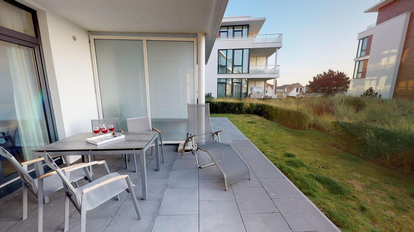 Abgerundet wird das Apartment durch die möblierte Terrasse mit Meerblick, die zum gemütlichen Beisammensein einlädt.