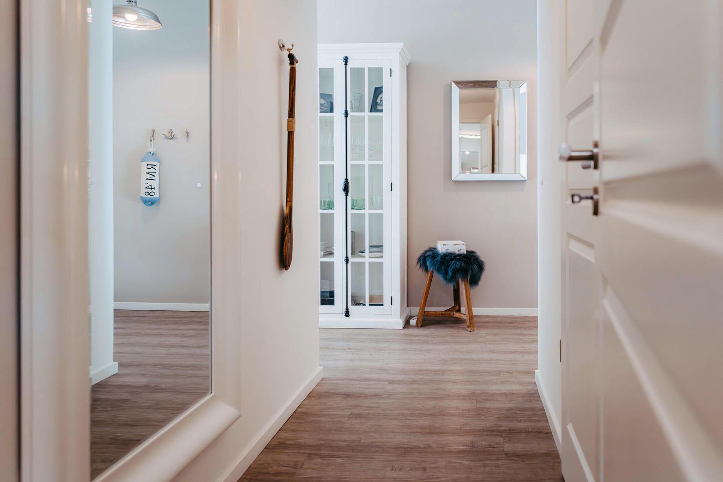 Ihr 62 m² großes Ferienapartment befindet sich im 1. OG des Hauses D. Es ist für eine Belegung mit 4 Personen ausgelegt. Parken Sie Ihr Auto auf dem zum Apartment gehörenden Außenstellplatz, der sich direkt vor dem Haus befindet. Sie gelangen mit dem Aufzug oder über die Treppe zu Ihrem Apartment.