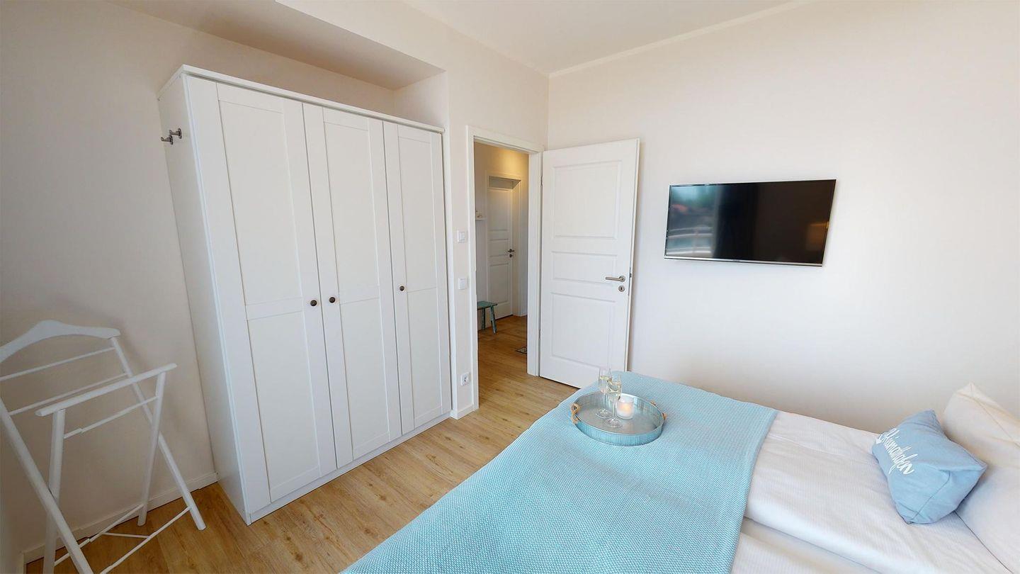 Ein großzügig geschnittenes Wohnzimmer mit komfortabler Schlafcouch für zwei Personen, ein Ess-/Küchenbereich und ein Schlafzimmer mit Boxspring-Doppelbett machen den Urlaub perfekt. Weiterhin gibt es ein Badezimmer mit Dusche und Badewanne.