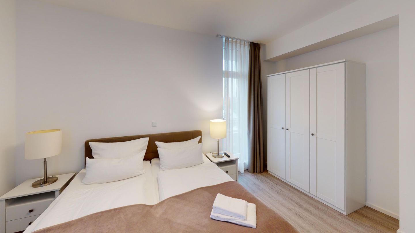 Ein großzügiges Wohnzimmer mit Ess- und Küchenbereich, zwei Schlafzimmer und zwei Bäder (eines mit Dusche und eines mit Dusche und Badewanne) versprechen viel Komfort. Eines der Schlafzimmer ist mit einem komfortablen Boxspringbett ausgestattet, das zweite Schlafzimmer mit einem Einzelbett und einem ausziehbaren "Kojenbett".