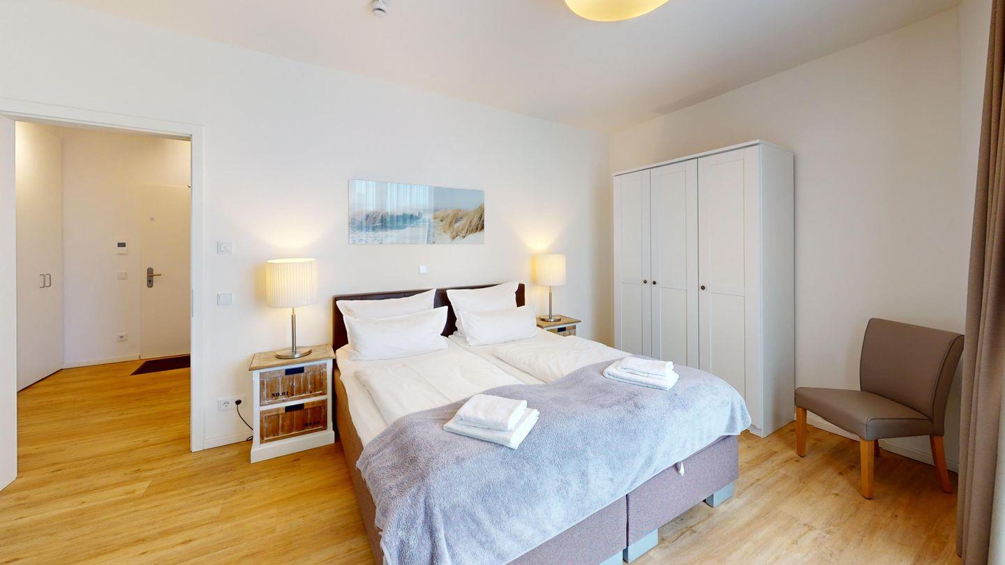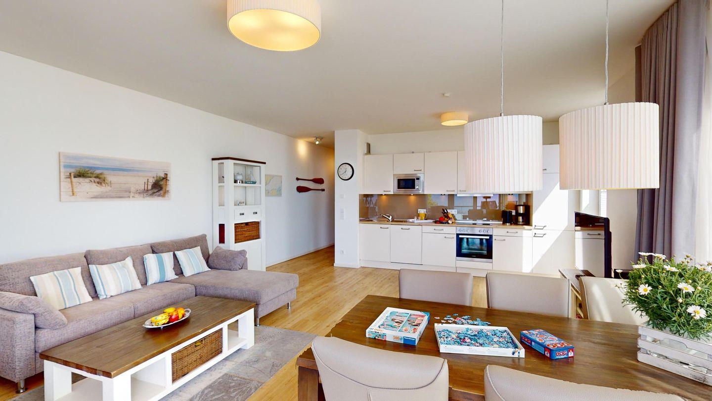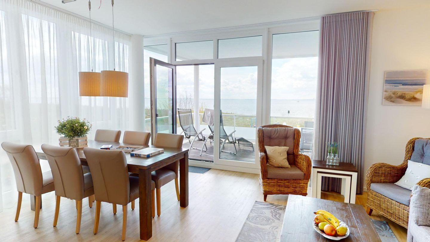 Das rund 99 m² große Ferienapartment ist mit seinen drei Schlafzimmern für 6 Personen ausgelegt. Die Wohnung liegt im Haus E in erster Reihe. Auf dem Balkon haben Sie einen Meerblick über die Lübecker Bucht. Die Wohnung liegt in direkter Strandnähe.