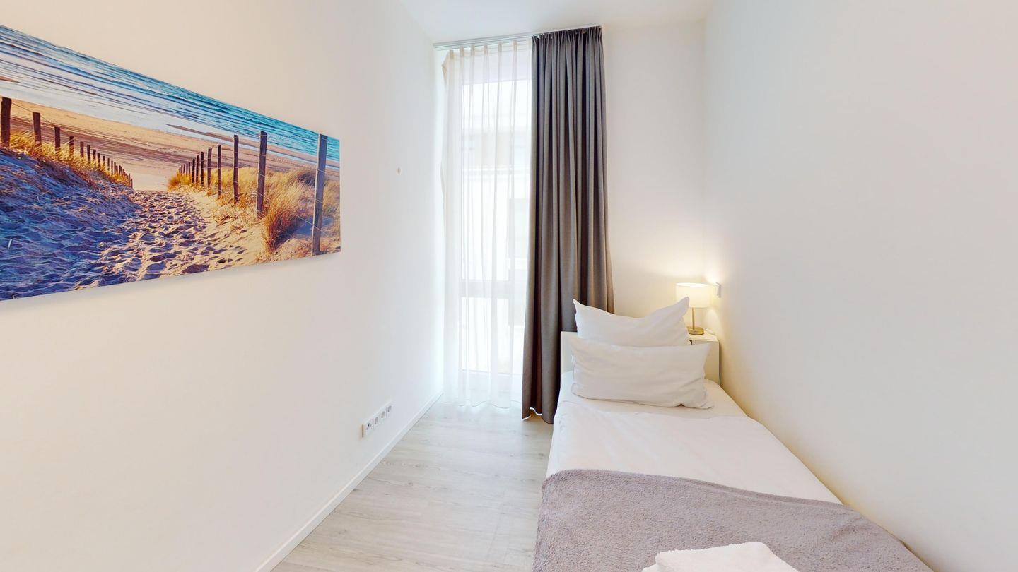 Die 4-Zimmer-Wohnung im zweiten Obergeschoss ist mit 99 m² für sechs Personen ausgerichtet. Im großen Wohnzimmer mit Küchenzeile genießen Sie Ihre Mahlzeiten, sowie Kaffee aus der Nespresso-Maschine und können gesellschaftliche Abende verbringen. Drei Schlafzimmer für je zwei Personen, dazu zwei Bäder (je eines mit Dusche und eines mit Badewanne) bieten größtmöglichen Komfort. Zwei der Schlafzimmer sind mit einem komfortablen Boxspringbett ausgestattet, das dritte Schlafzimmer verfügt über ein Einzelbett und ein ausziehbares "Kojenbett". Vom Balkon haben Sie den perfekten Meerblick über die Lübecker Bucht.