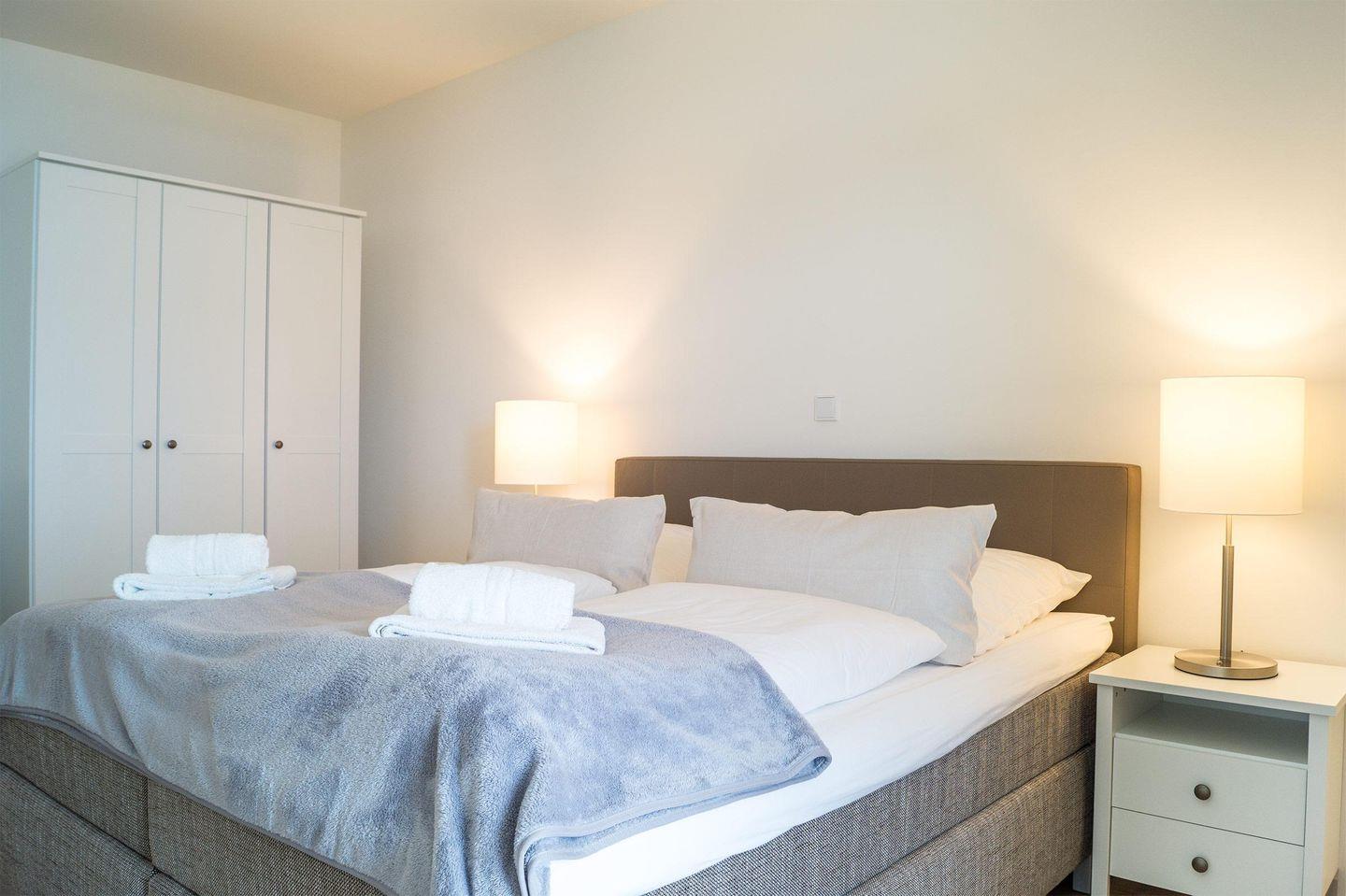 Das 70 m² große 2-Zimmer Apartment befindet sich im 2. Obergeschoss des Hauses F. Es ist für eine Belegung mit 2 Personen ausgelegt.