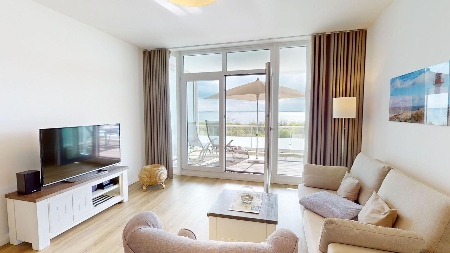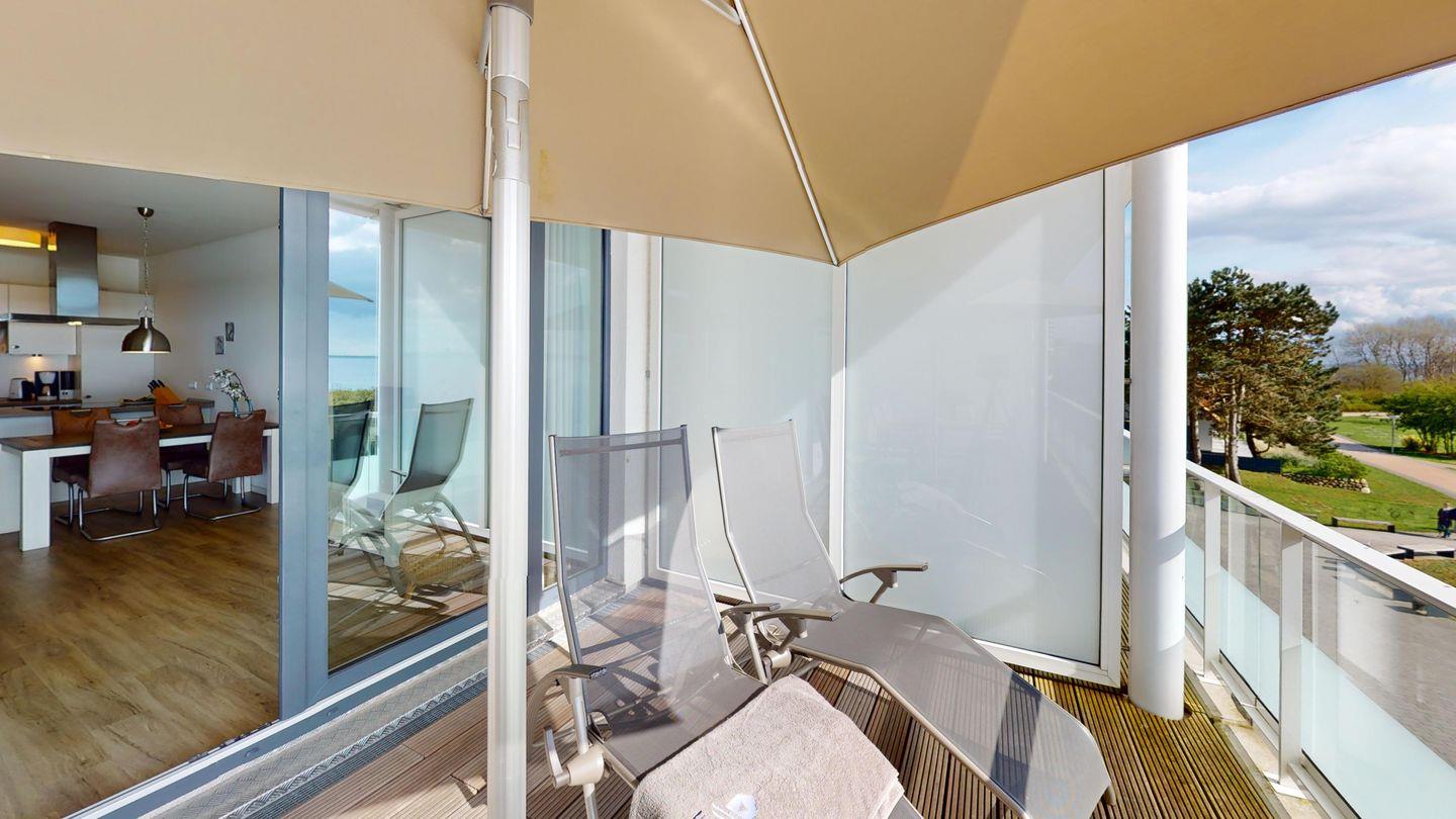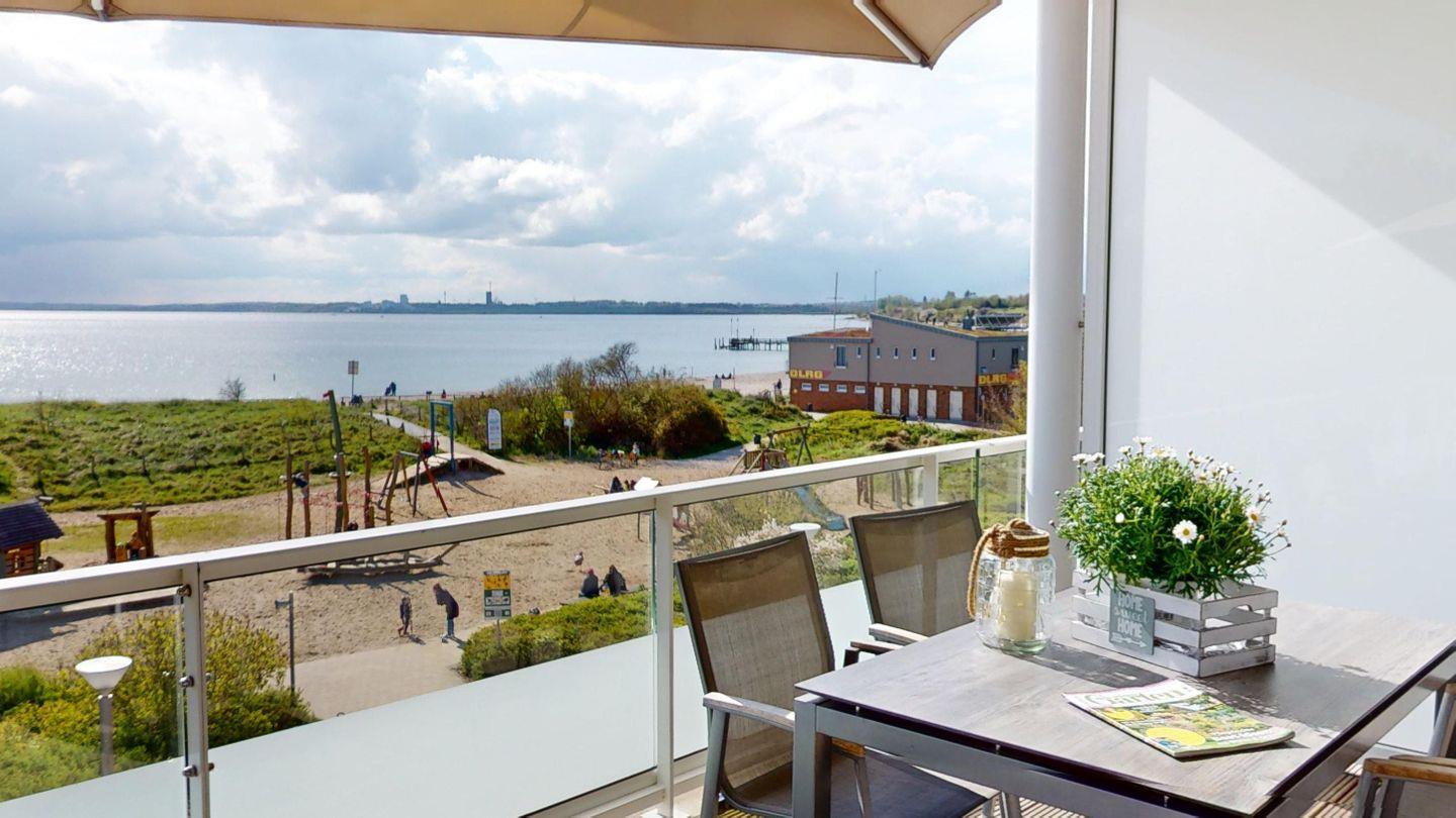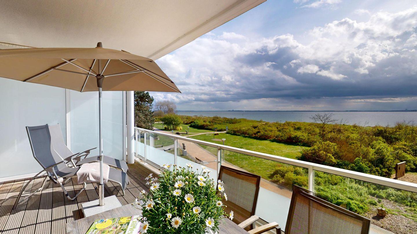Die 68 m² große Wohnung befindet sich im zweiten Obergeschoss des "Südkap" mit toller Aussicht über die Lübecker Bucht.