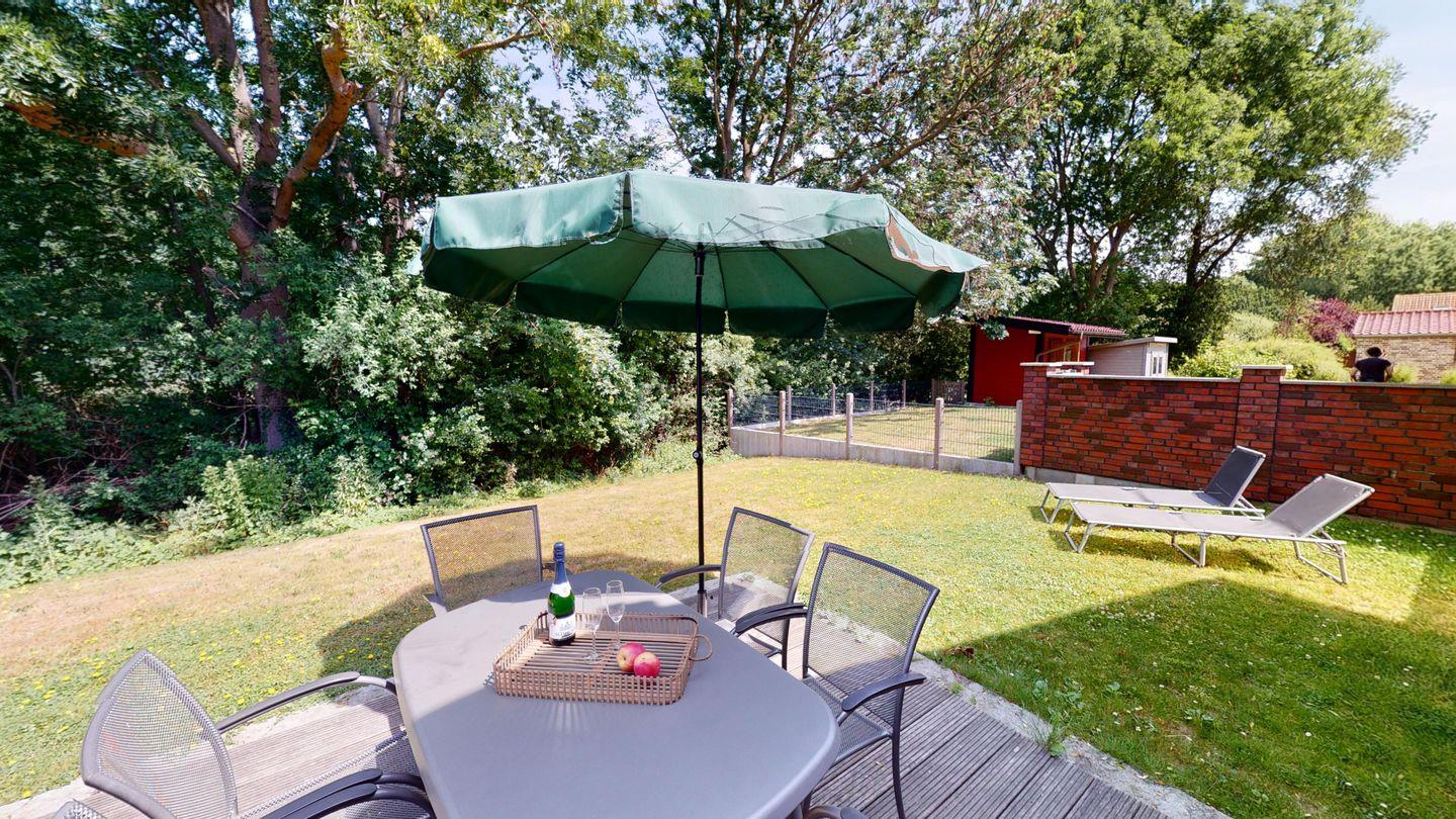 Abgerundet wird das Haus durch die möblierte Terrasse mit Strandkorb, Grill und Sonnenschirm mit direktem Anschluss zum Naturschutzgebiet.
