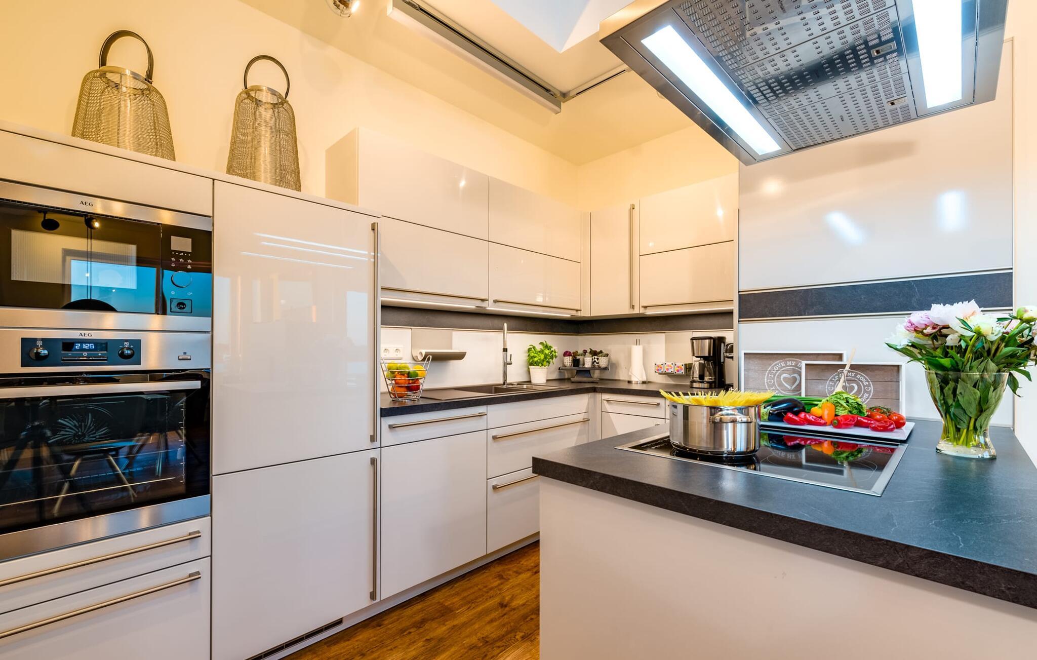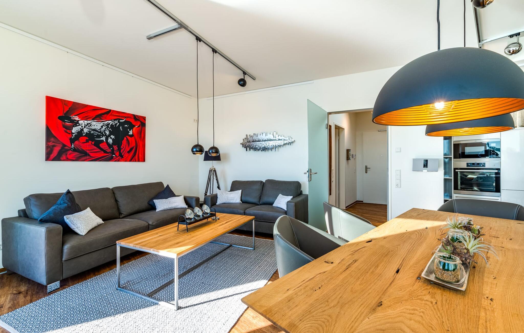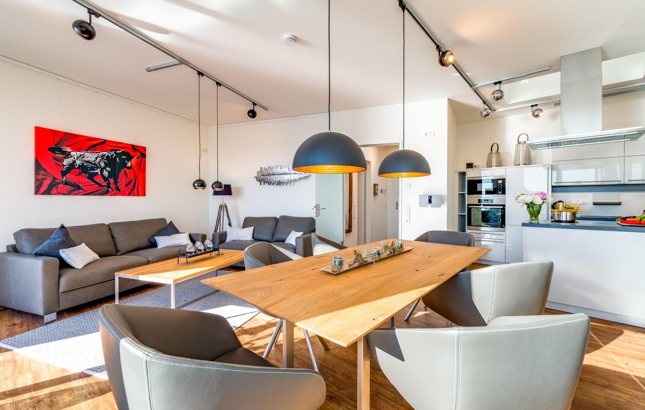 HOCHGENUSS byder sine gæster velkommen med elegance og høj kvalitet, moderne og indbydende, gennemtænkt ned til mindste detalje, i elegante gråtoner parret med varme træelementer.