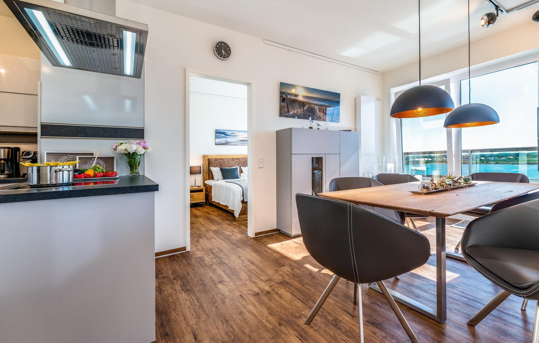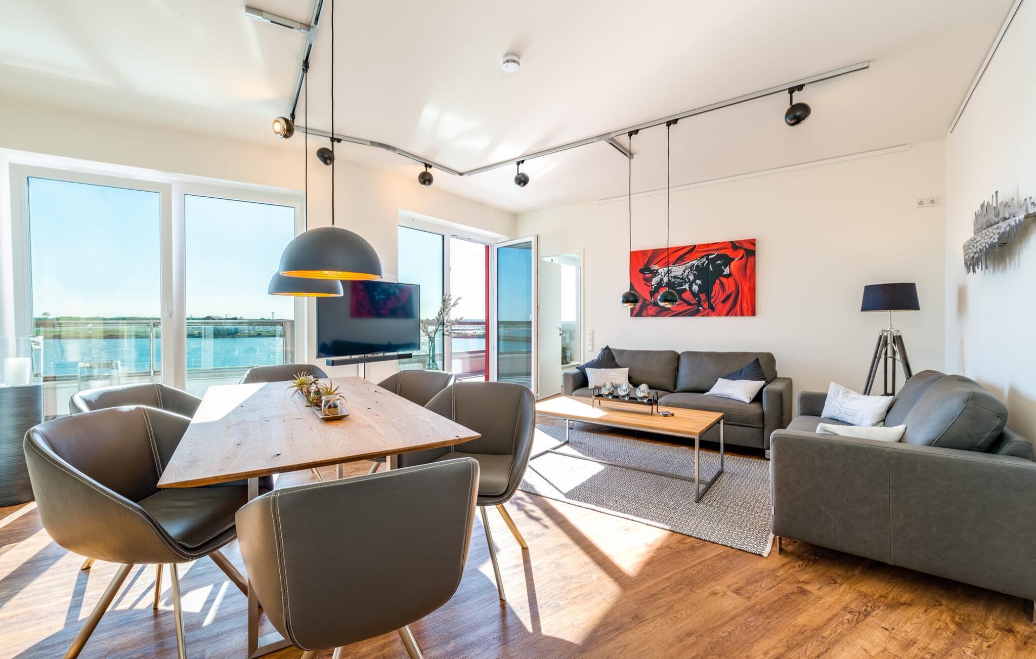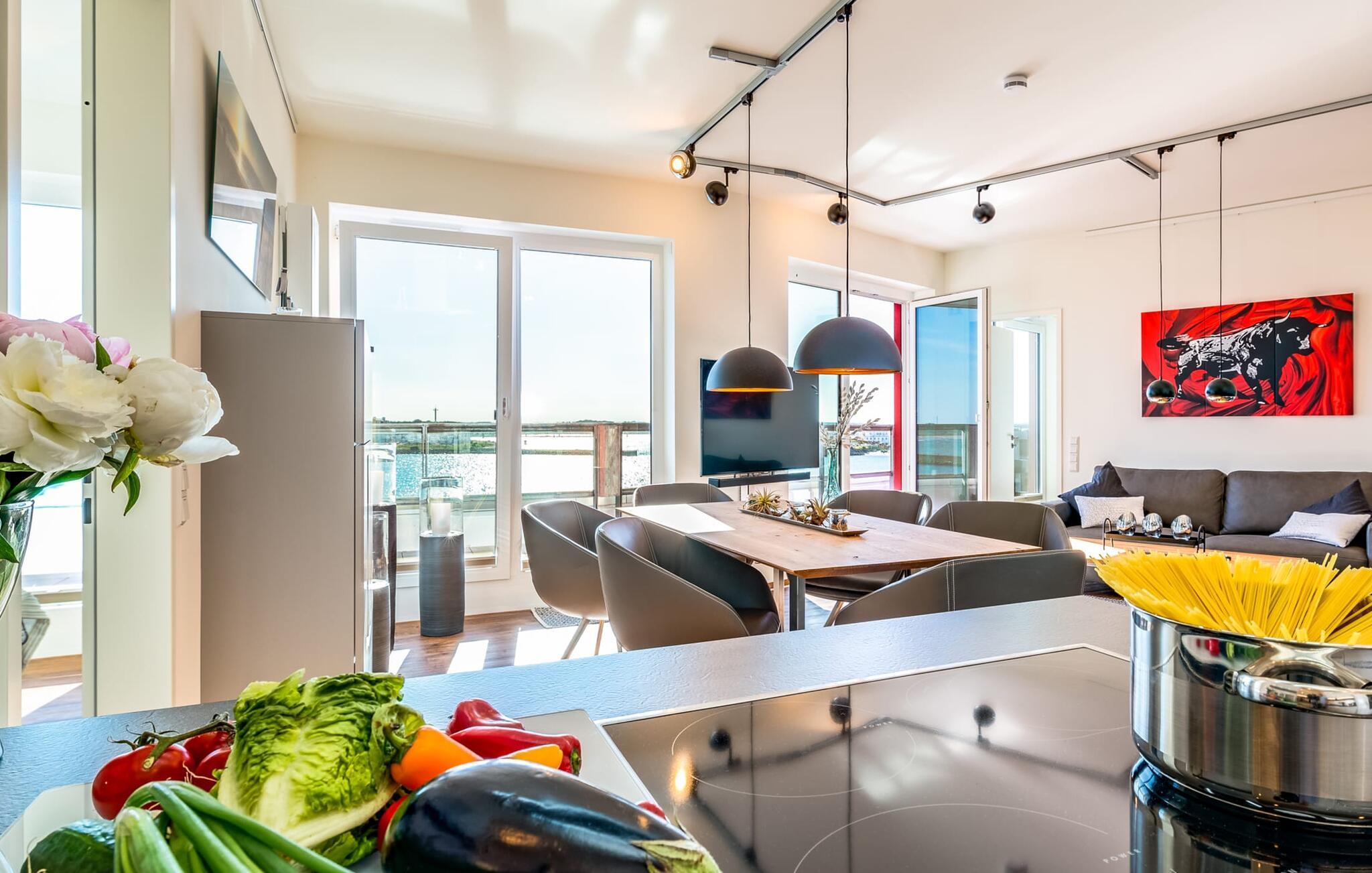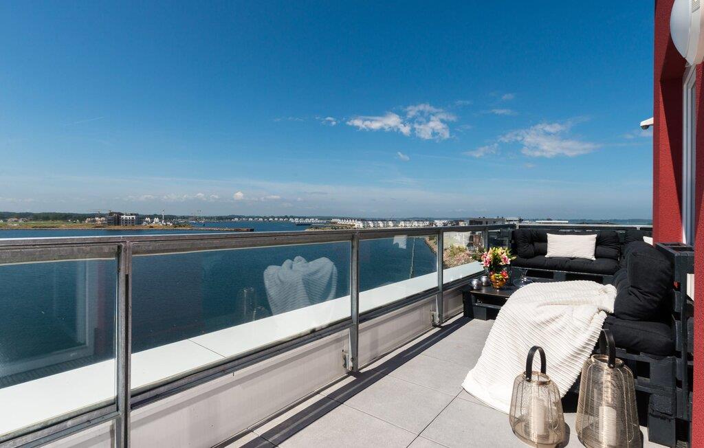 HOCHGENUSS penthouse ligger på 3. sal i Bollwark Residence på toppen af ??Østersøferiestedet Olpenitz, direkte ved Østersøen.