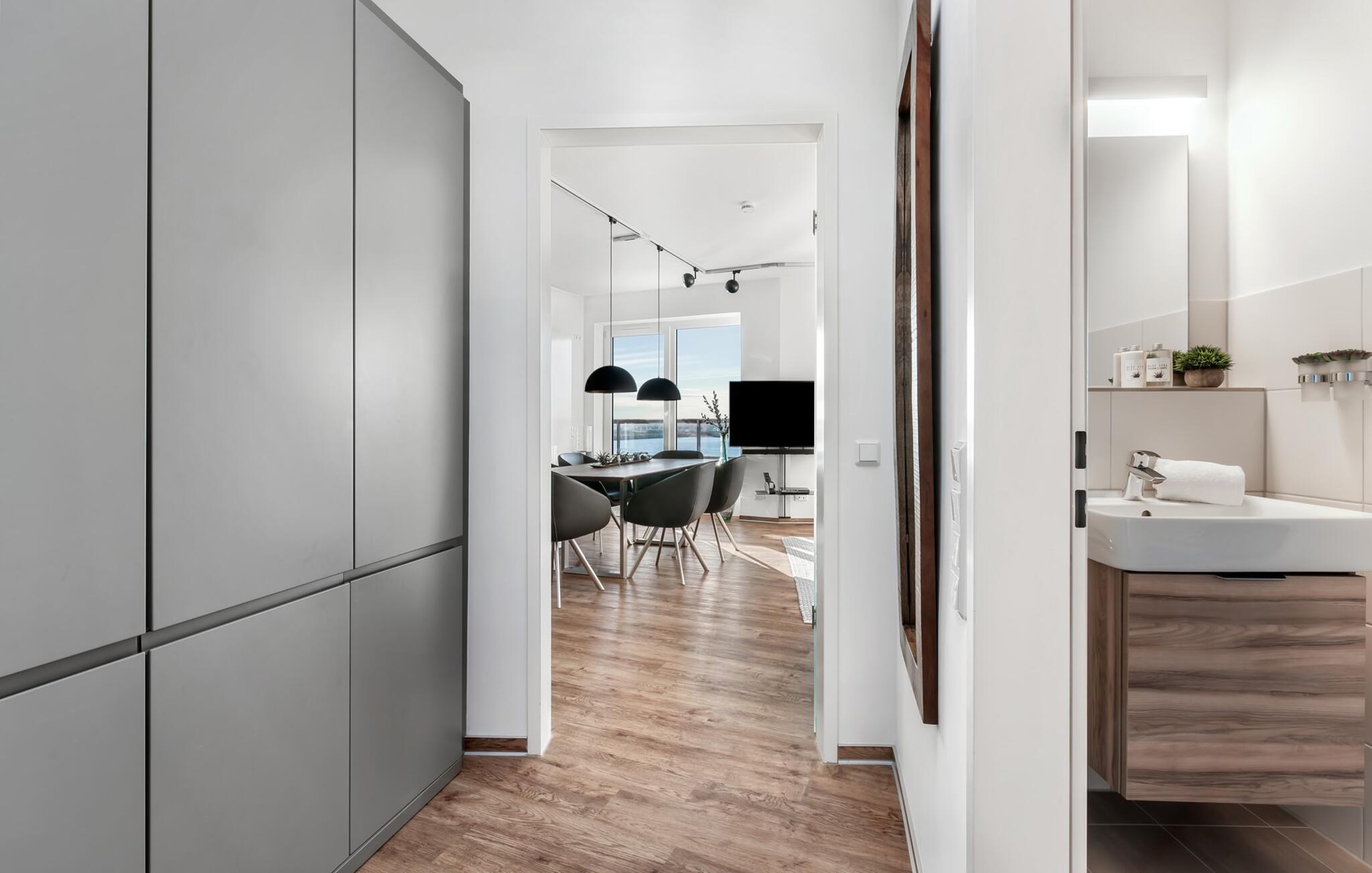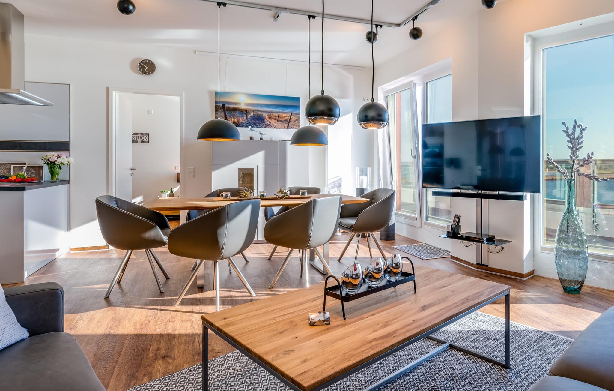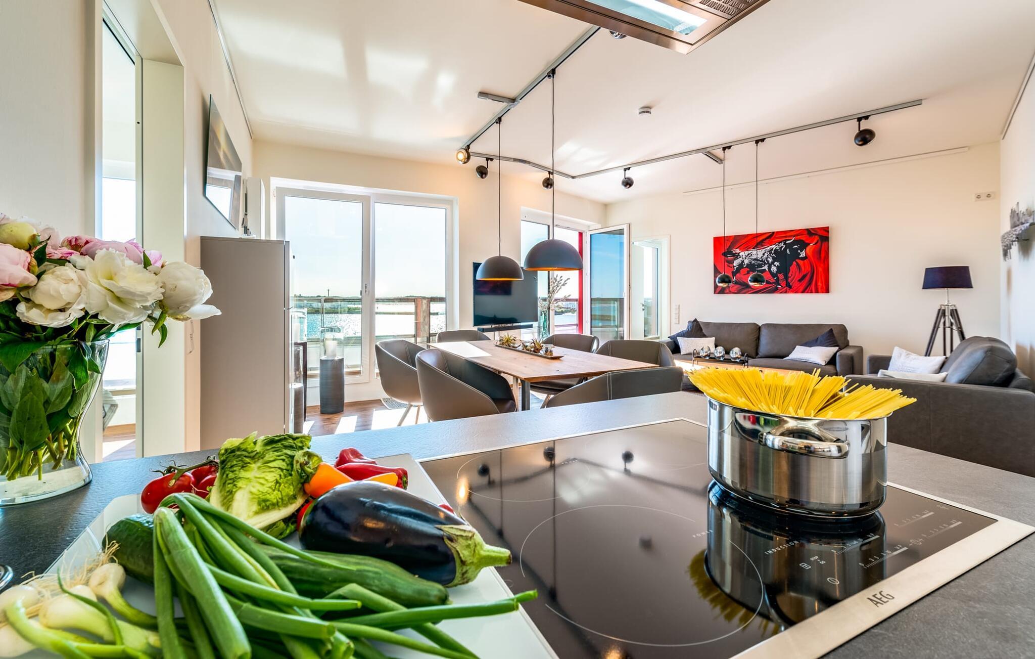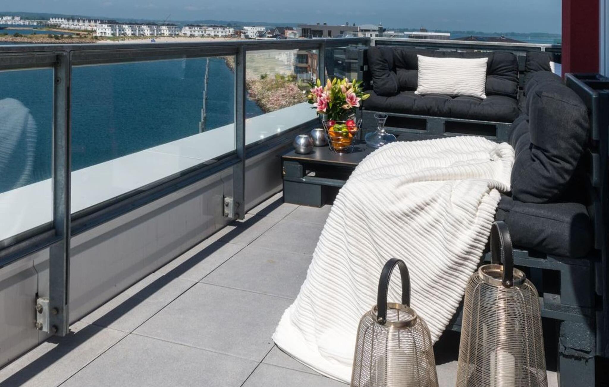 HOCHGENUSS penthouse ligger på 3. sal i Bollwark Residence på toppen af ??Østersøferiestedet Olpenitz, direkte ved Østersøen.